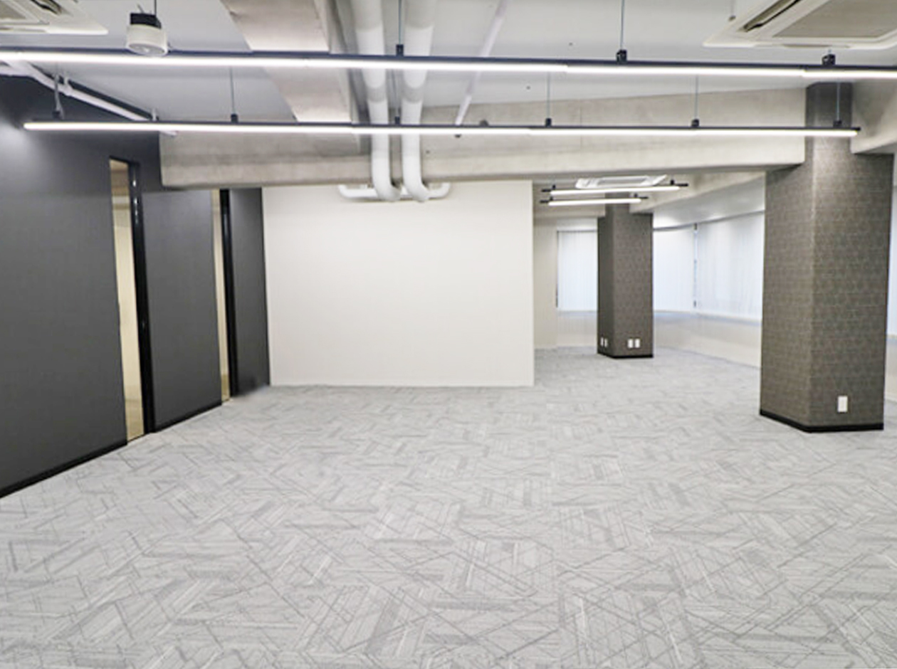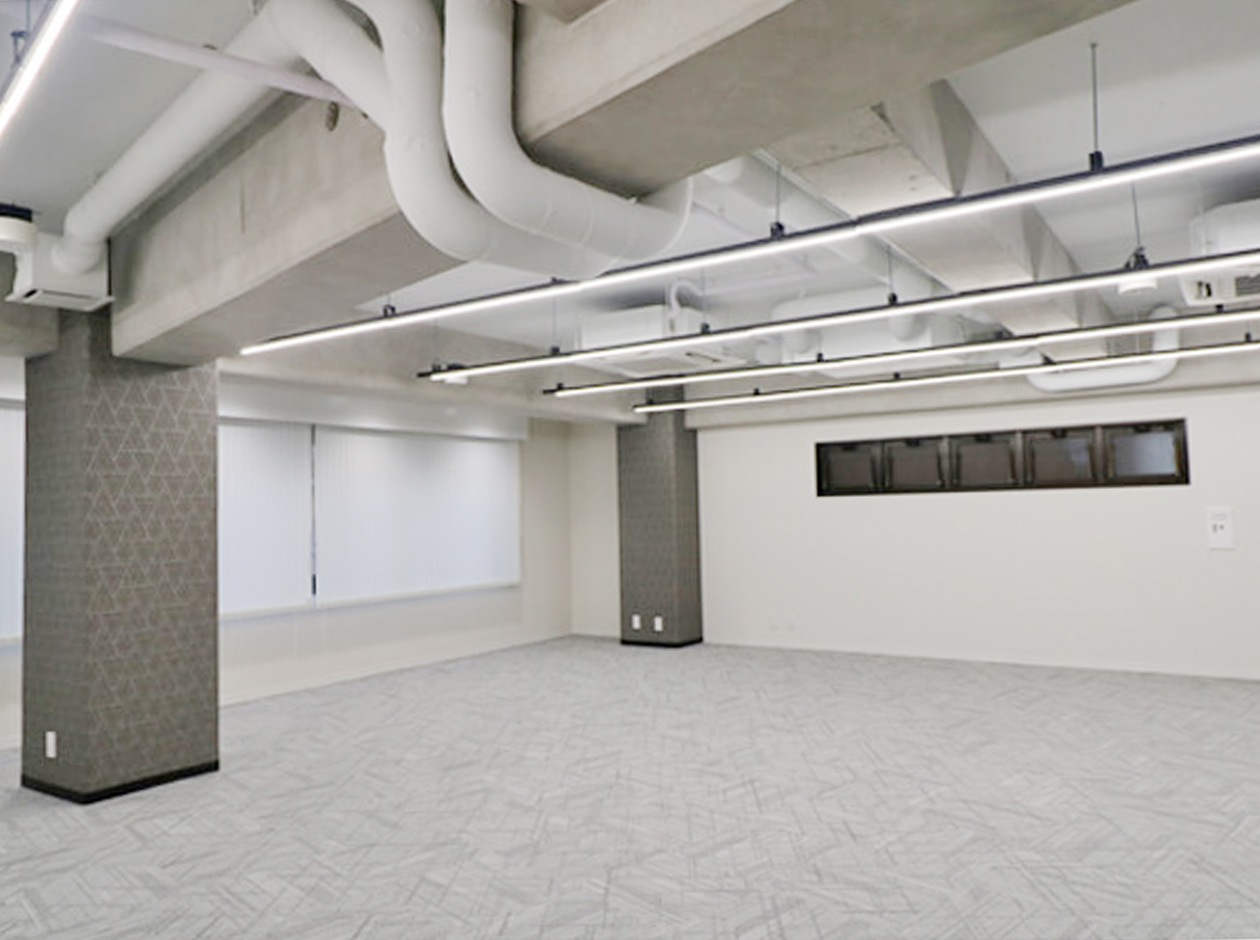 受付と8名用の会議室を1室設置しており、執務室は自由にレイアウトが組めるフリースペースとなっております。ワンフロア・ワンテナントで、室外男女別トイレを完備しています。