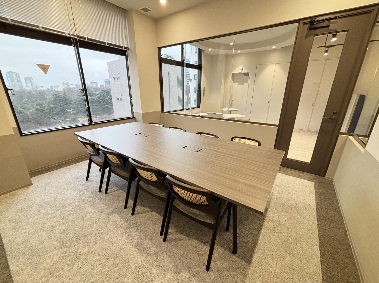 新宿区・新宿エリアに位置する、セットアップオフィスです。最寄り駅は、東京メトロ丸ノ内線 新宿御苑前駅です。貸室内には、6名用会議室が2室、8名用会議室が1室、ファミレスブース、26名用のデスクとチェアを設置しています。ワンフロア・ワンテナントで使い勝手良好です。トイレは男女別になっています。
