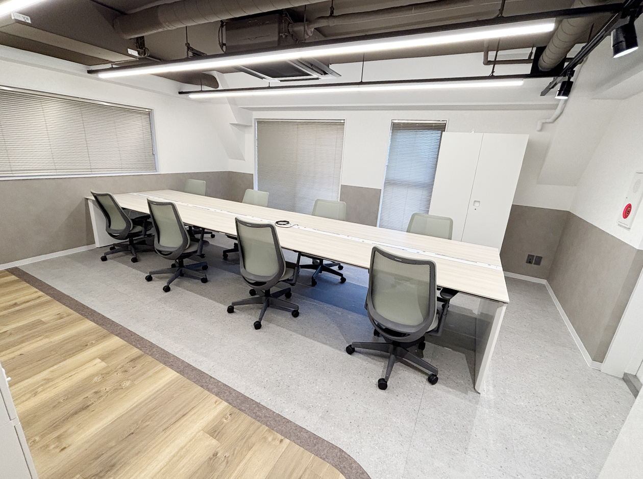千代田区・神田神保町エリアに位置する、2024年7月にリニューアル済みのフルセットアップオフィスです。貸室内には、受付・什器付き会議室2室・26名分執務室什器・テレカンブース等の設置に加え、Wi-Fiも引込済みのため入居後すぐに業務を開始できます。当区画はメゾネットタイプになっており、お客様に合ったシチュエーションでの利用が可能となっています。また、屋上バルコニーがあるためほっと一息休憩したり、ランチをしていただくことも可能です。
