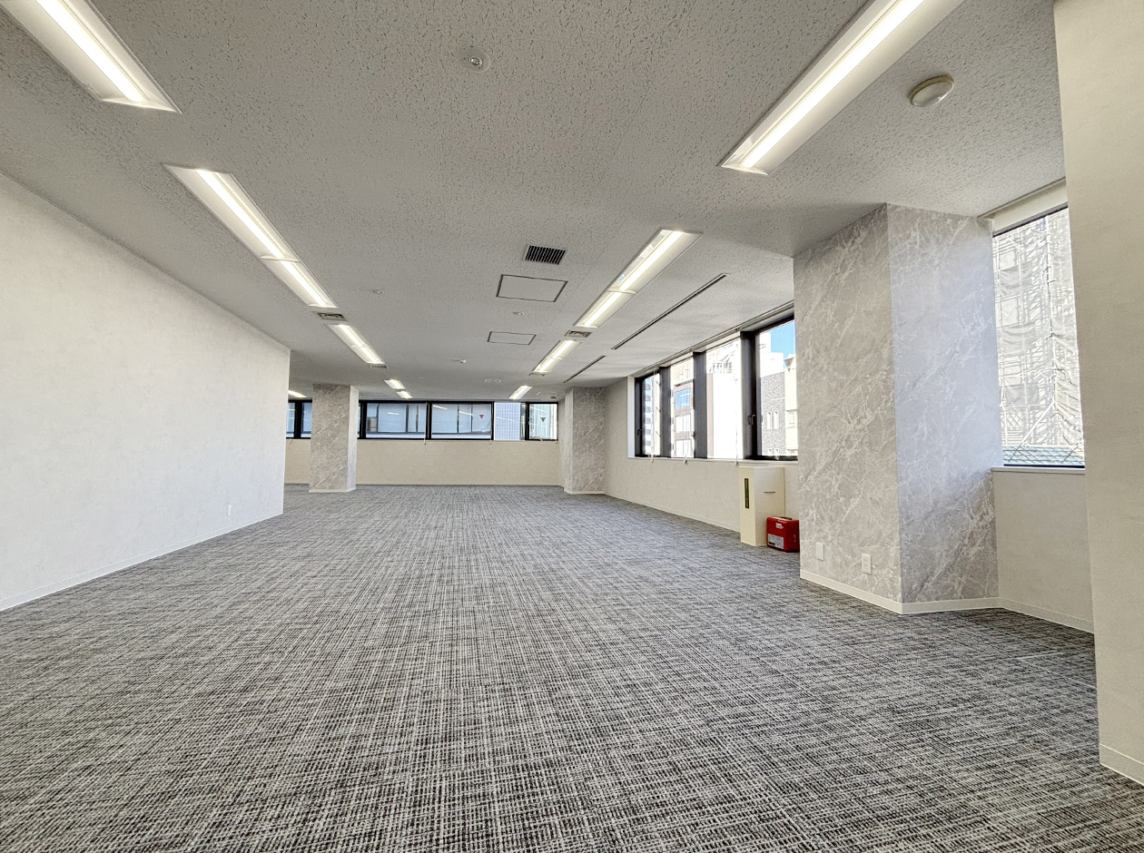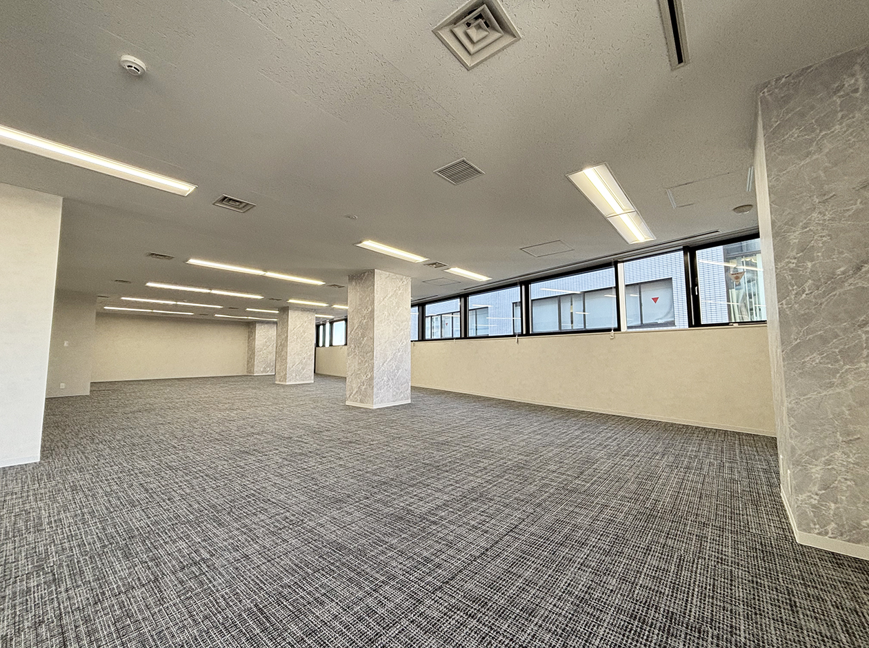 新宿区・北新宿エリアに位置する、2025年11月にリニューアル予定のセットアップオフィスです。ラウンジ・会議室3室(8名用1室・6名用2室)を設置予定です。ラウンジにはソファや椅子を配置、来客スペースとしても、社員さんがリラックスできるスペースとしてご利用いただけます。執務スペースも窓面が多く採光性が高く明るいオフィスです。