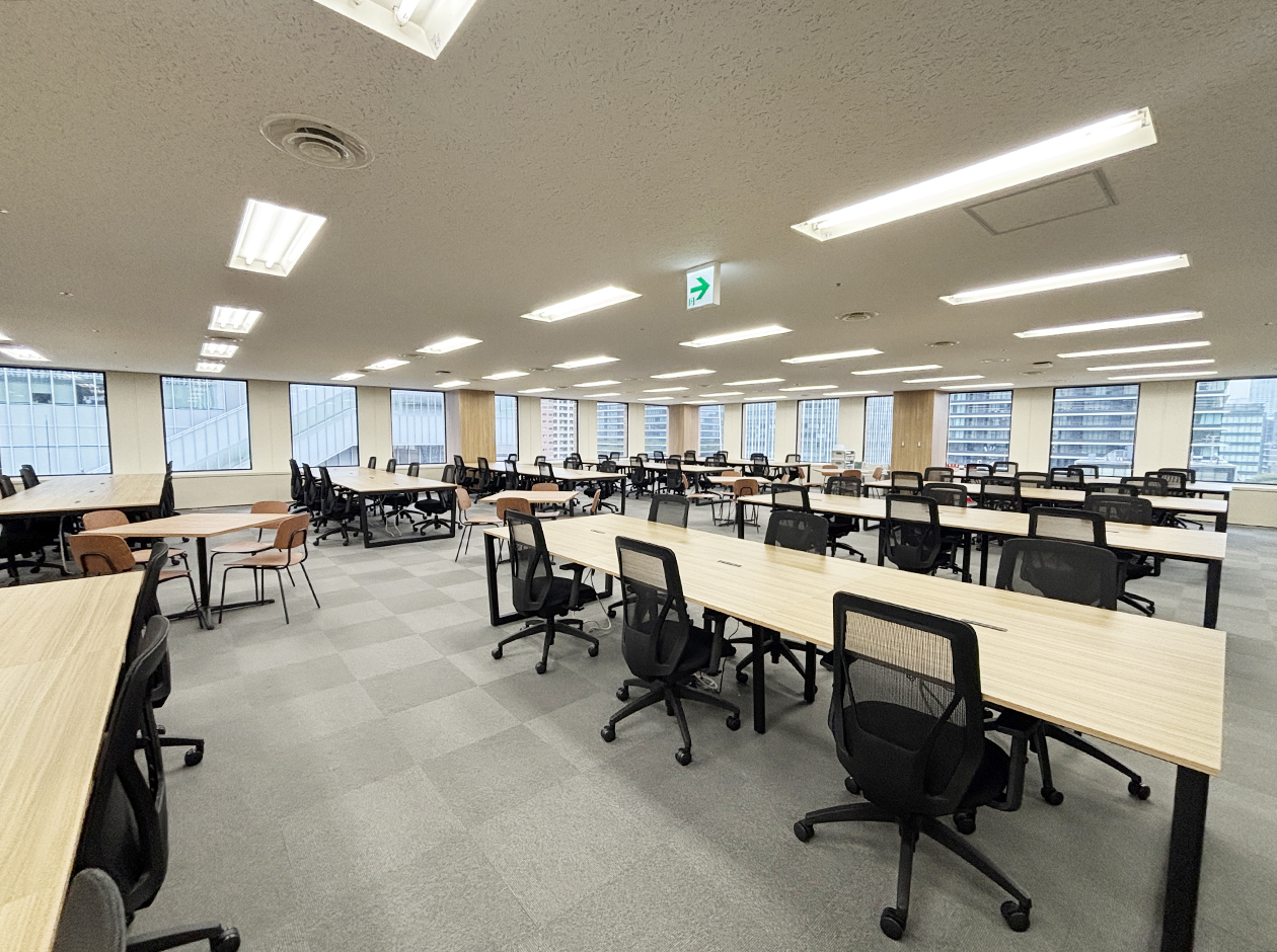 港区・虎ノ門エリアに位置する、フルセットアップオフィスです。東京メトロ日比谷線の虎ノ門ヒルズ駅近くでアクセス抜群の立地です。貸室内には、8名用会議室3室、集中ブース3席、ファミレスブース、8名用ロッカー10台を設置済みです。執務室には70席分のデスクとチェアが設置されており、入居後すぐに業務を開始できます。男女別トイレを完備しています。