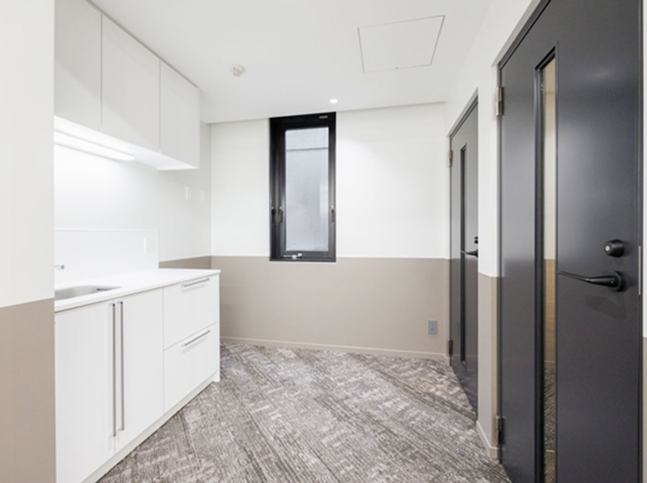 中央区・人形町エリアに位置する、ハーフセットアップオフィスです。8名用会議室、6名用会議室、ファミレスブース、テレカンブース、カウンター席を設置済みです。ラウンジスペースは高級感のある洗練されたデザインになっています。什器を入れるだけで業務を始めることができ、初期費用と契約から入居までの期間を大幅に抑えられます。トイレは男女別になっています。