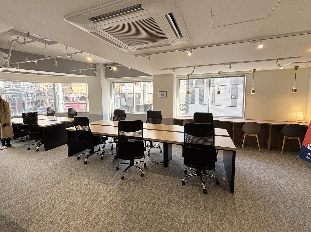 中央区・東日本橋エリアに位置する、フルセットアップオフィスです。東日本橋や 馬喰横山駅が利用可能でアクセスの良い立地です。貸室内には、受付・5名用会議室・打合せスペース・14名分の執務室デスクと椅子、3名用カウンター、個室テレカンブースが設置されており、初期費用を抑えることができると共にご入居後すぐに業務を開始することができます。