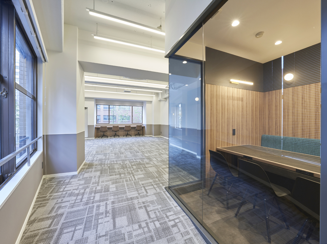 中央区・築地エリアに位置する、内装・家具付きのデザインセットアップオフィスです。貸室内には、6名用会議室・フリースペース・テレカンブースが設置されています。個別空調・OAフロア・男女別トイレを完備しています。天井が高く開放的な空間です。ワンフロア・ワンテナントで使い勝手良好です。