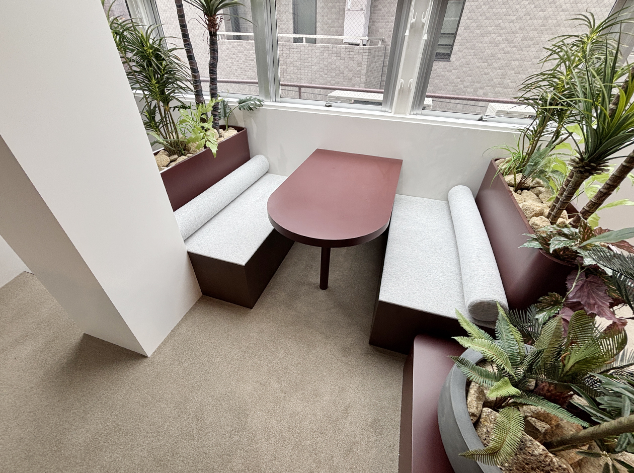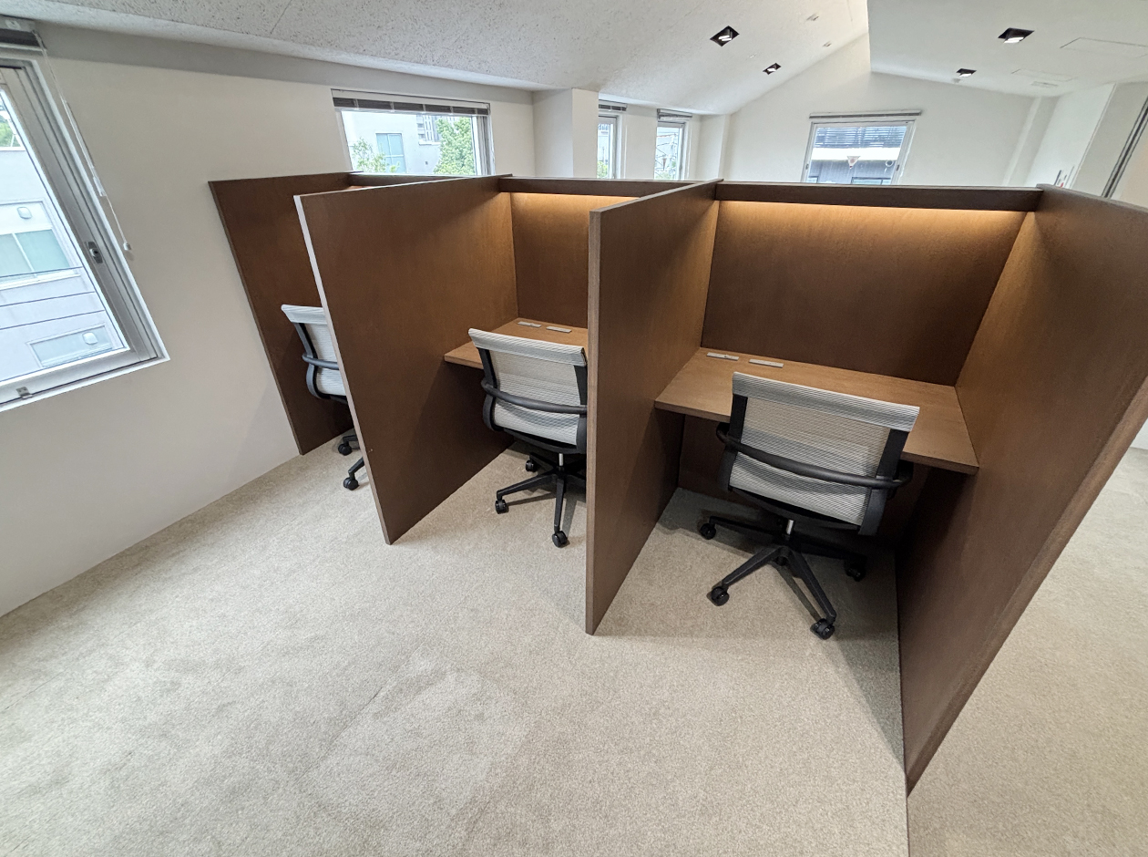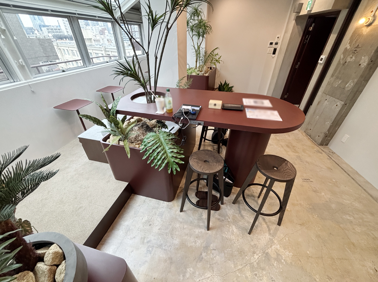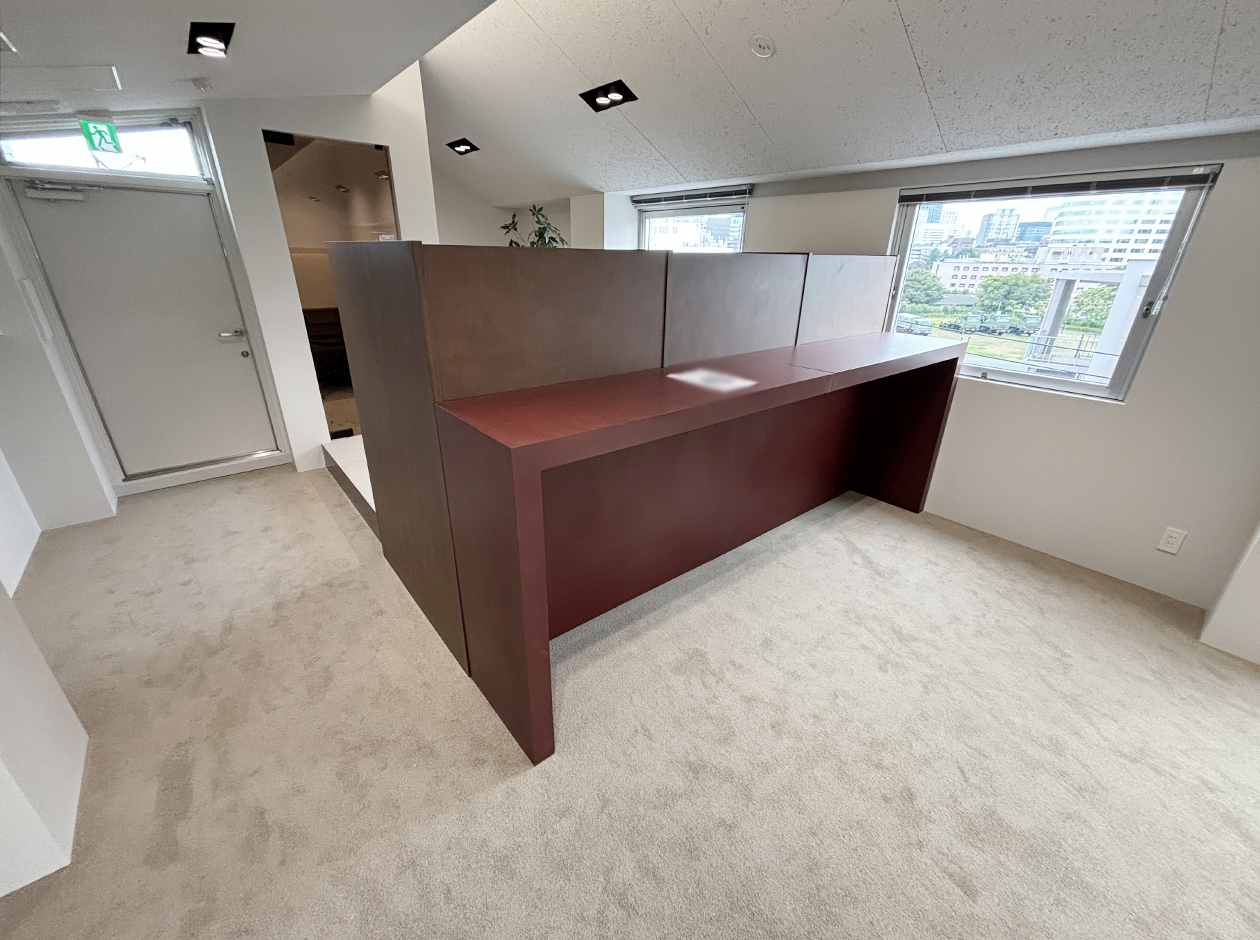新宿区エリアに位置する、メゾネットタイプのセットアップオフィスです。最寄駅は、複数路線が利用可能な市ヶ谷駅です。公園をイメージした貸室内は、オフィス空間でありながら、働く方の憩いの場としての顔も持ち合わせています。貸室内には、受付・6名用会議室(什器付き)・8名用会議室(什器付き)・個室ブース・ラウンジスペース(什器付き)が設置されています。