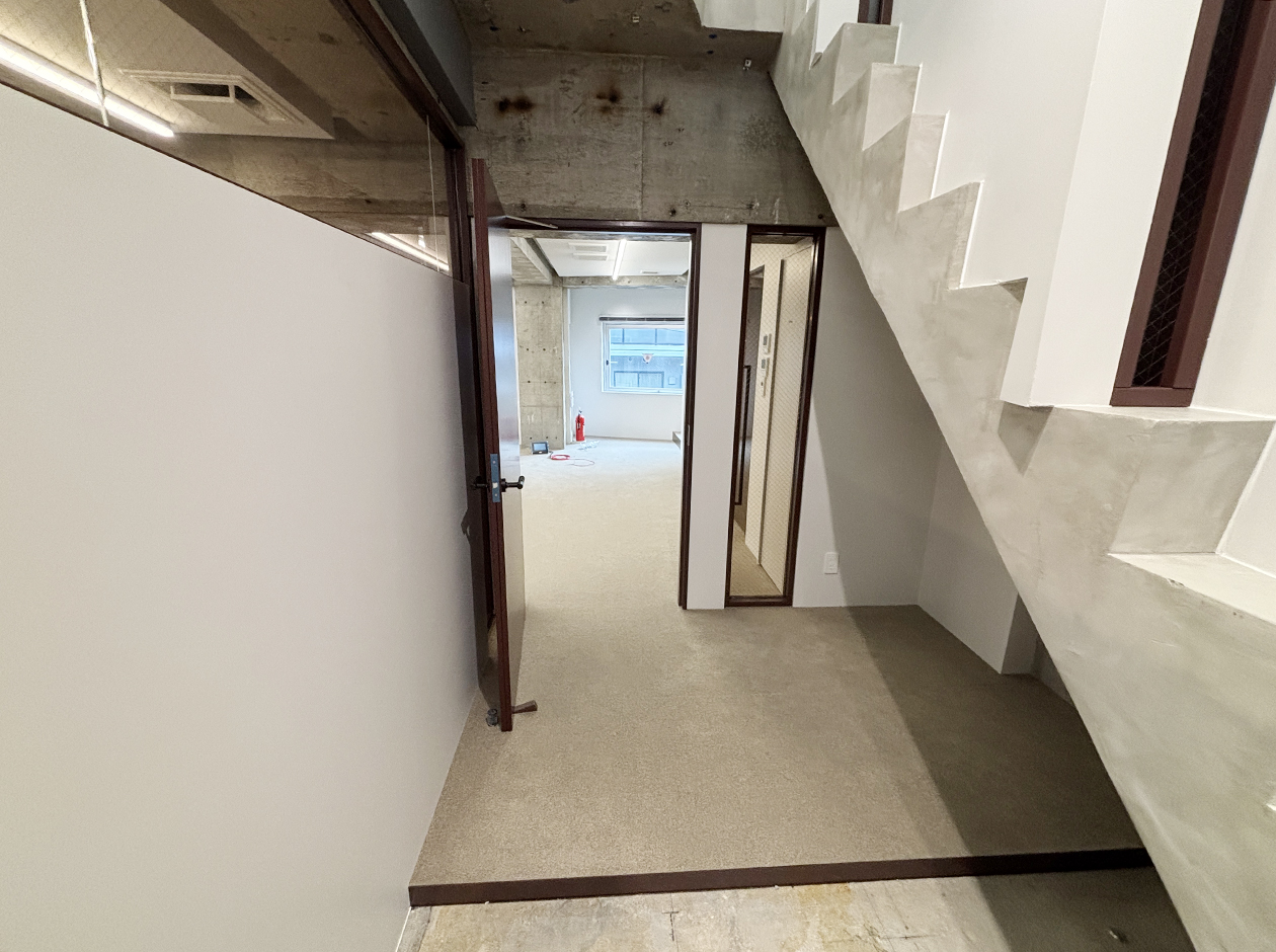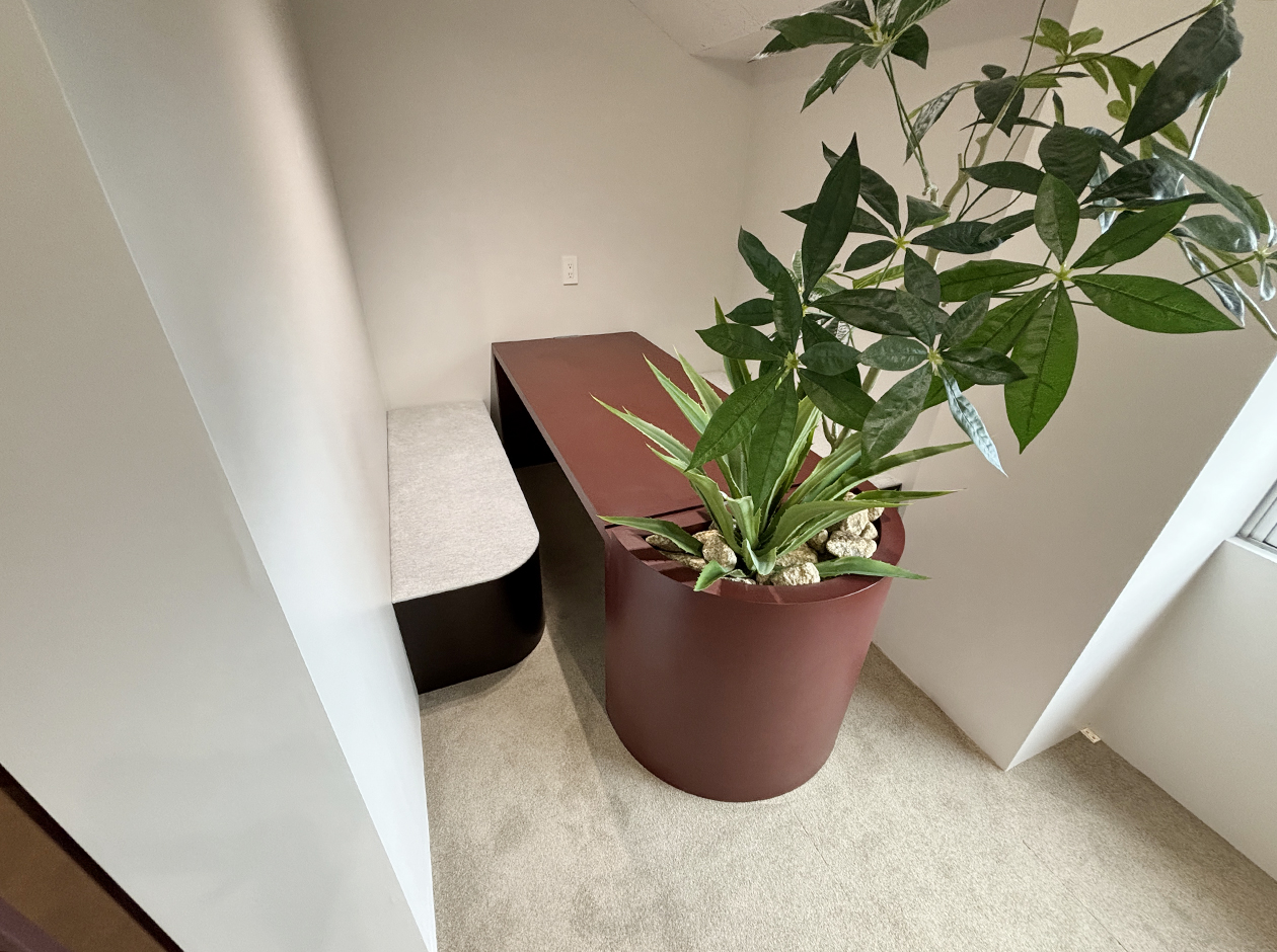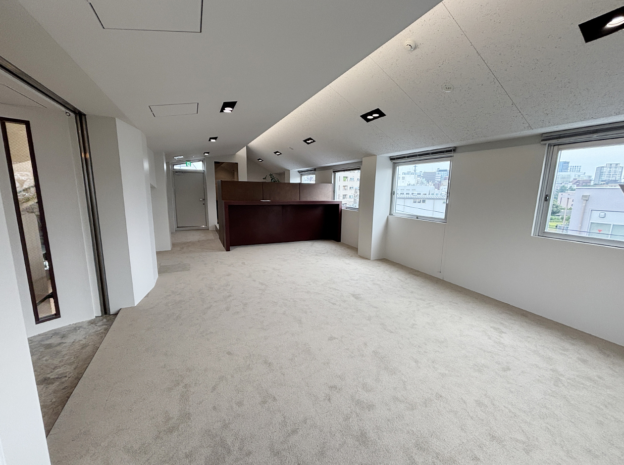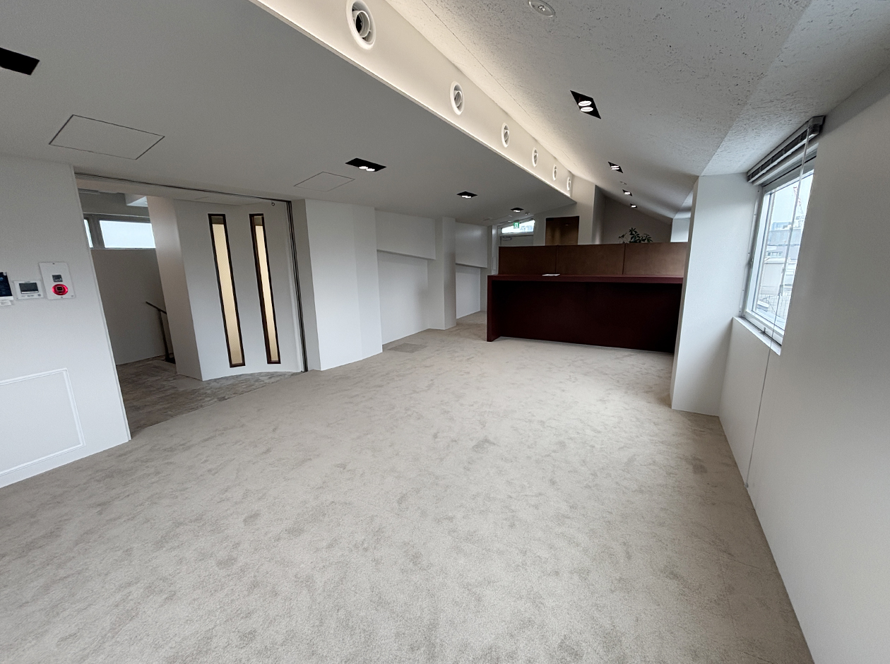 新宿区エリアに位置する、メゾネットタイプのセットアップオフィスです。最寄駅は、複数路線が利用可能な市ヶ谷駅です。公園をイメージした貸室内は、オフィス空間でありながら、働く方の憩いの場としての顔も持ち合わせています。貸室内には、受付・6名用会議室(什器付き)・8名用会議室(什器付き)・個室ブース・ラウンジスペース(什器付き)が設置されています。