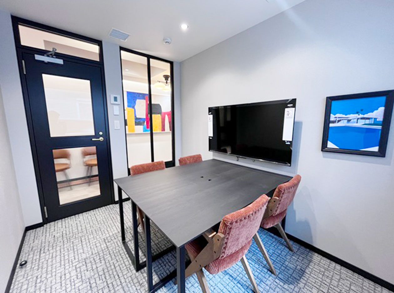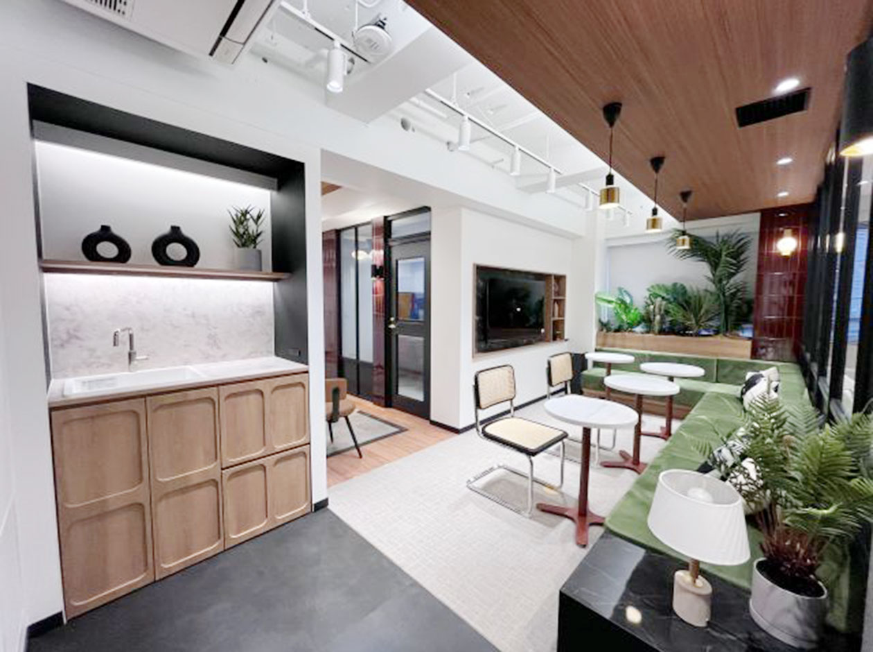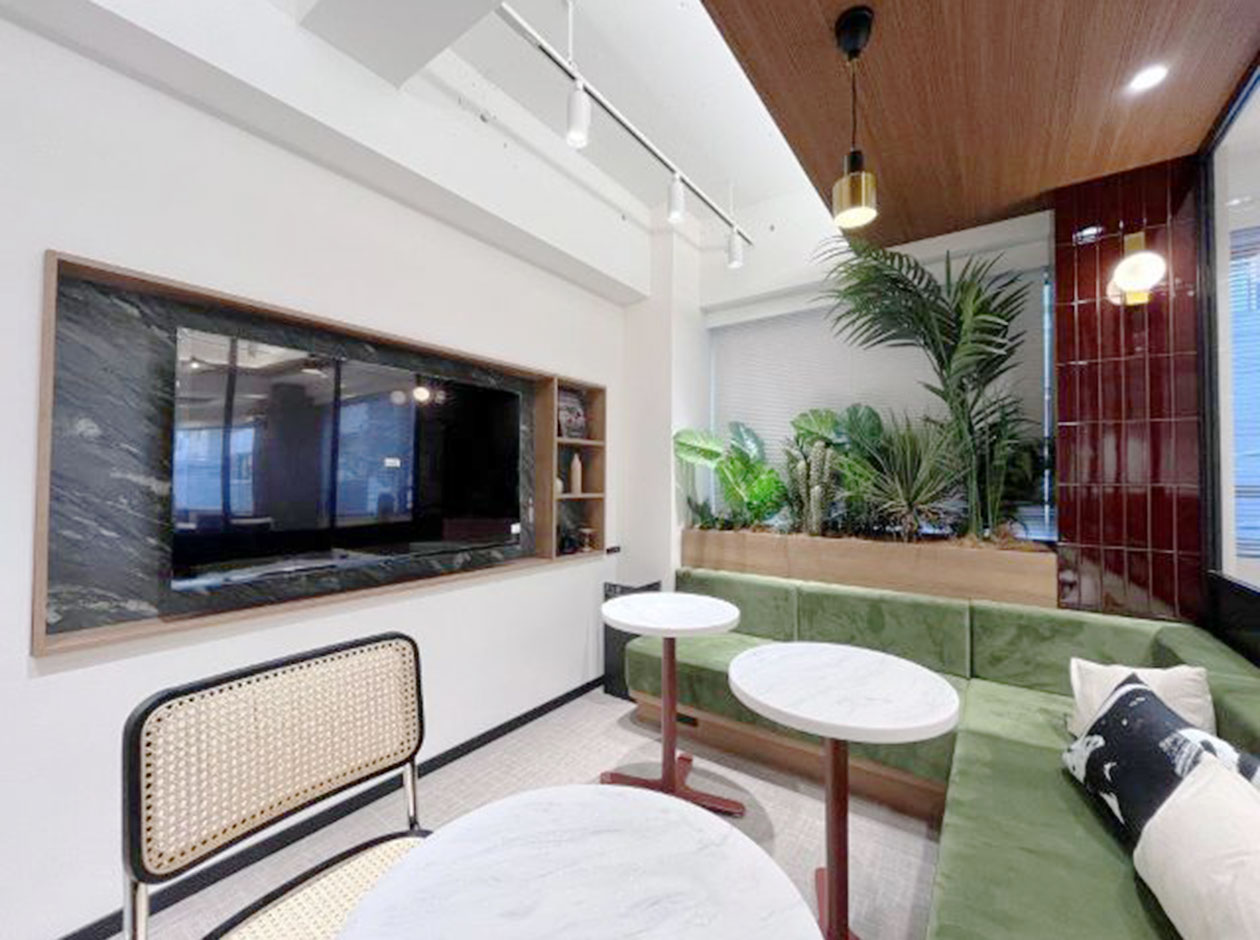中央区・八丁堀エリアに位置する、フルセットアップオフィスです。2025年に外観・エントランスのリニューアル工事が完了しています。貸室内には、6名用会議室、4名用会議室、モニター付きラウンジ、テレカンブースが設置されています。執務室には、16名分のデスク・チェアが完備されています。トイレは男女別になっています。