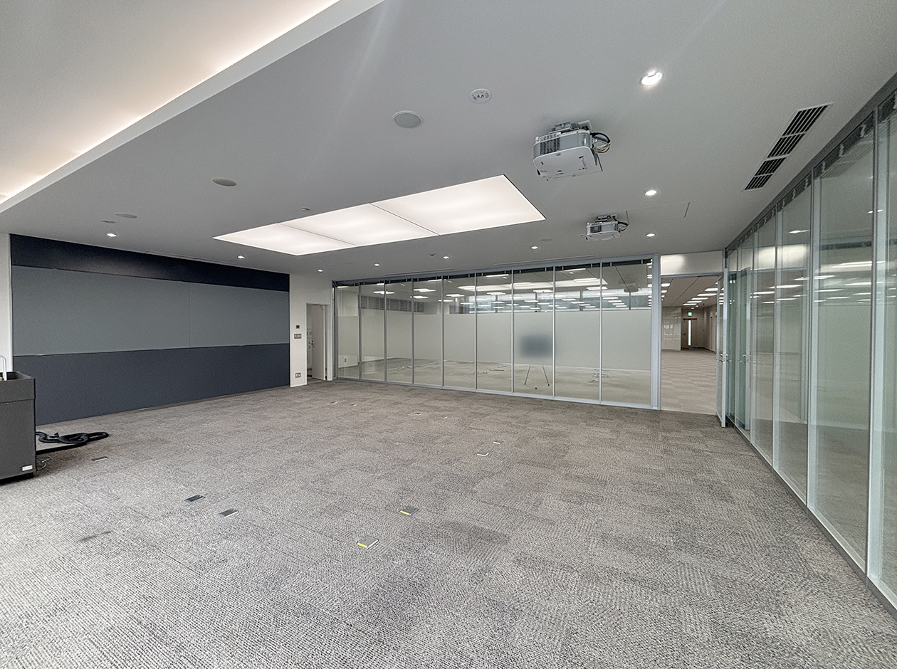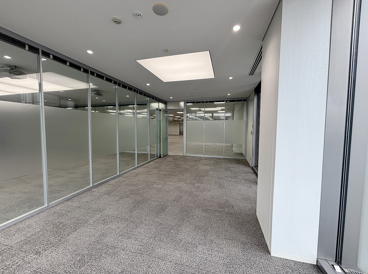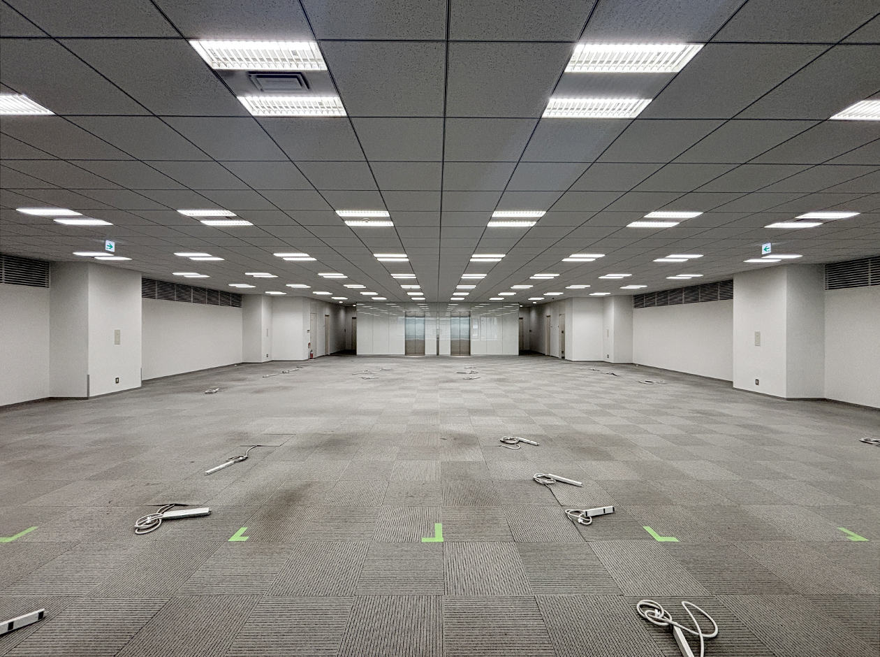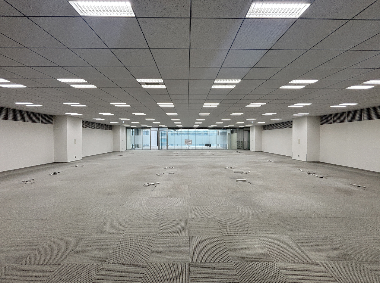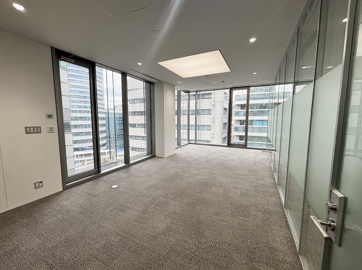 横浜市・新横浜エリアに位置する居抜きオフィスです。貸室内には、ガラスパーテーション等で区切られた会議室・役員室・倉庫が設置されています。トイレは室外にあり、男女別になっています。ワンフロア・ワンテナントで使い勝手良好です。