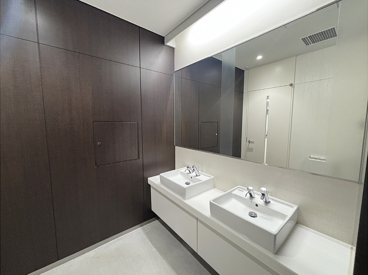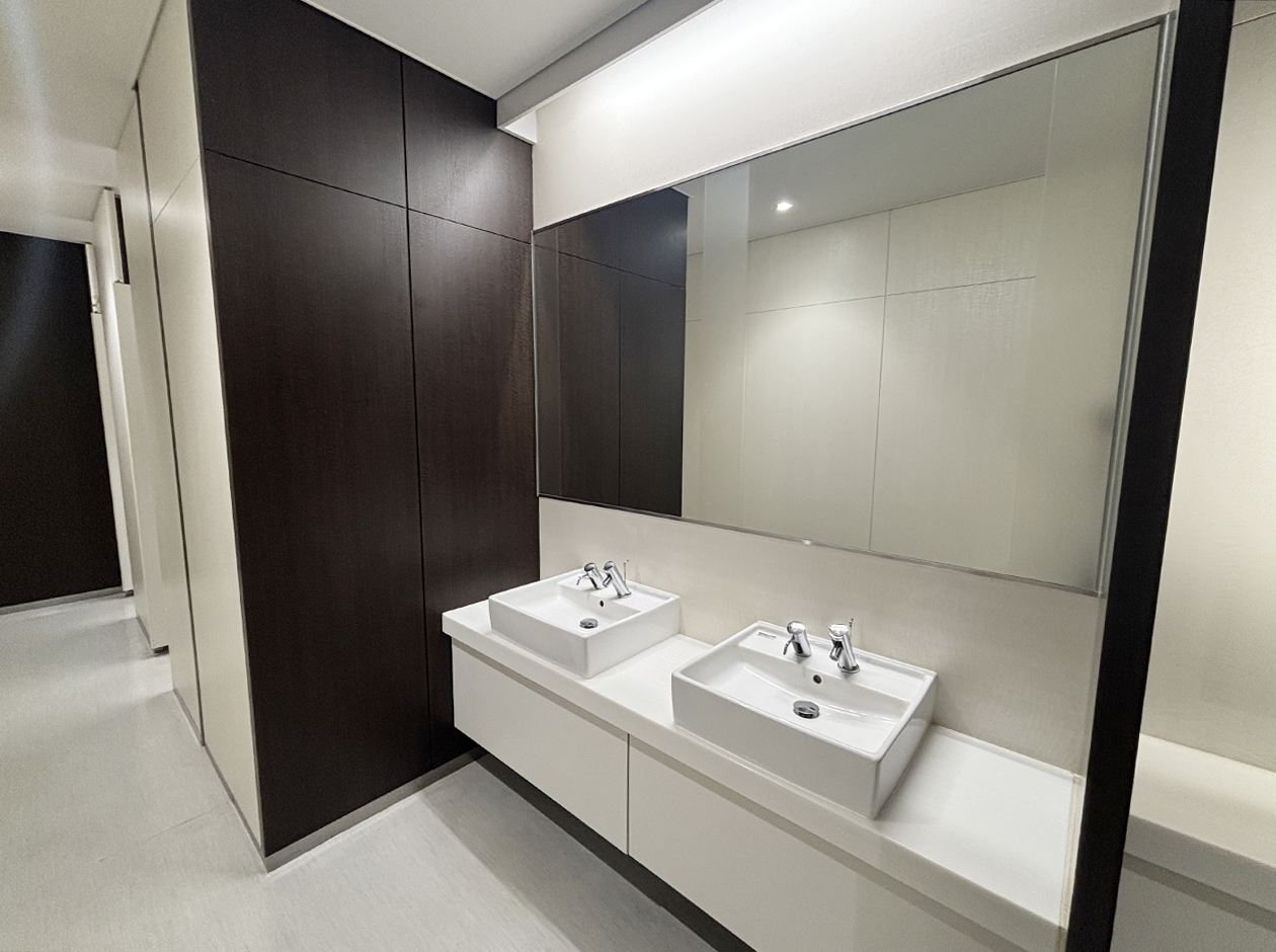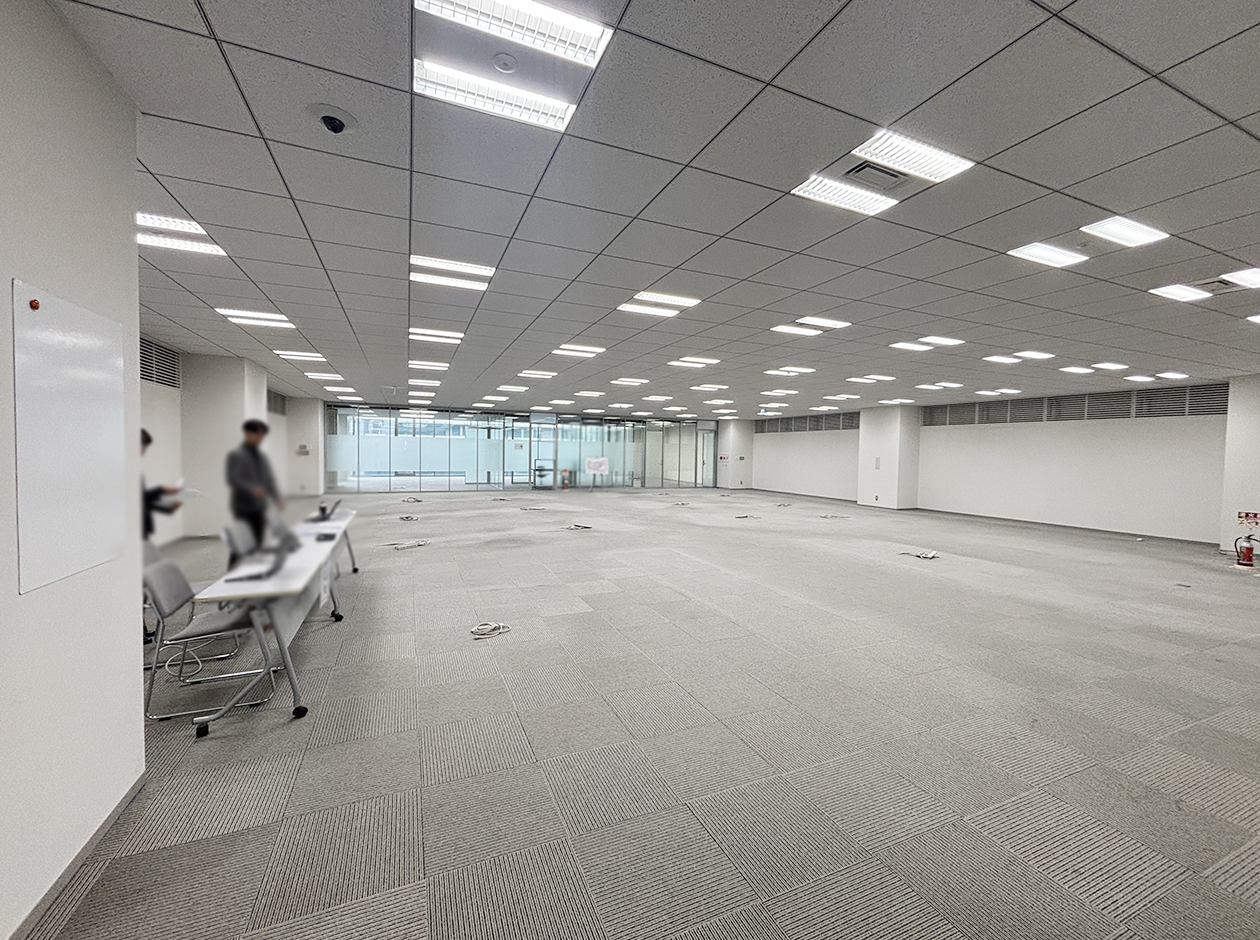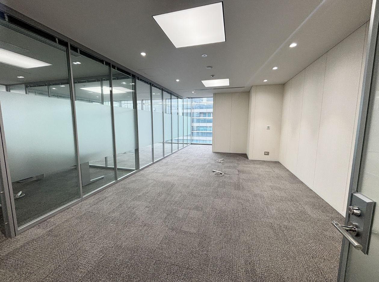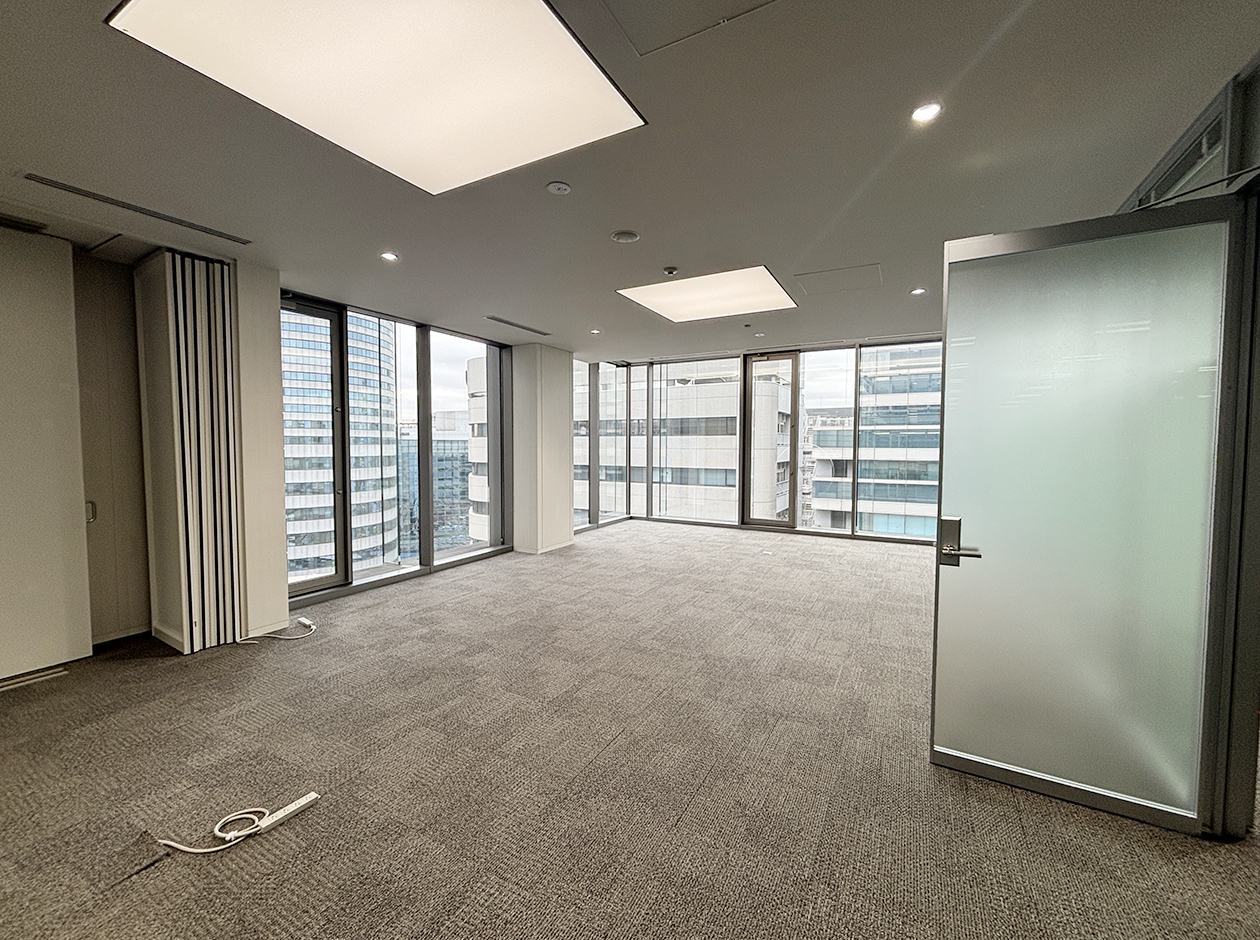 横浜市・新横浜駅に位置する居抜きオフィスです。貸室内には、ガラスパーテーション等で区切られた社長室・役員室が3室設置されています。トイレは室外にあり、男女別になっています。ワンフロア・ワンテナントで使い勝手良好です。