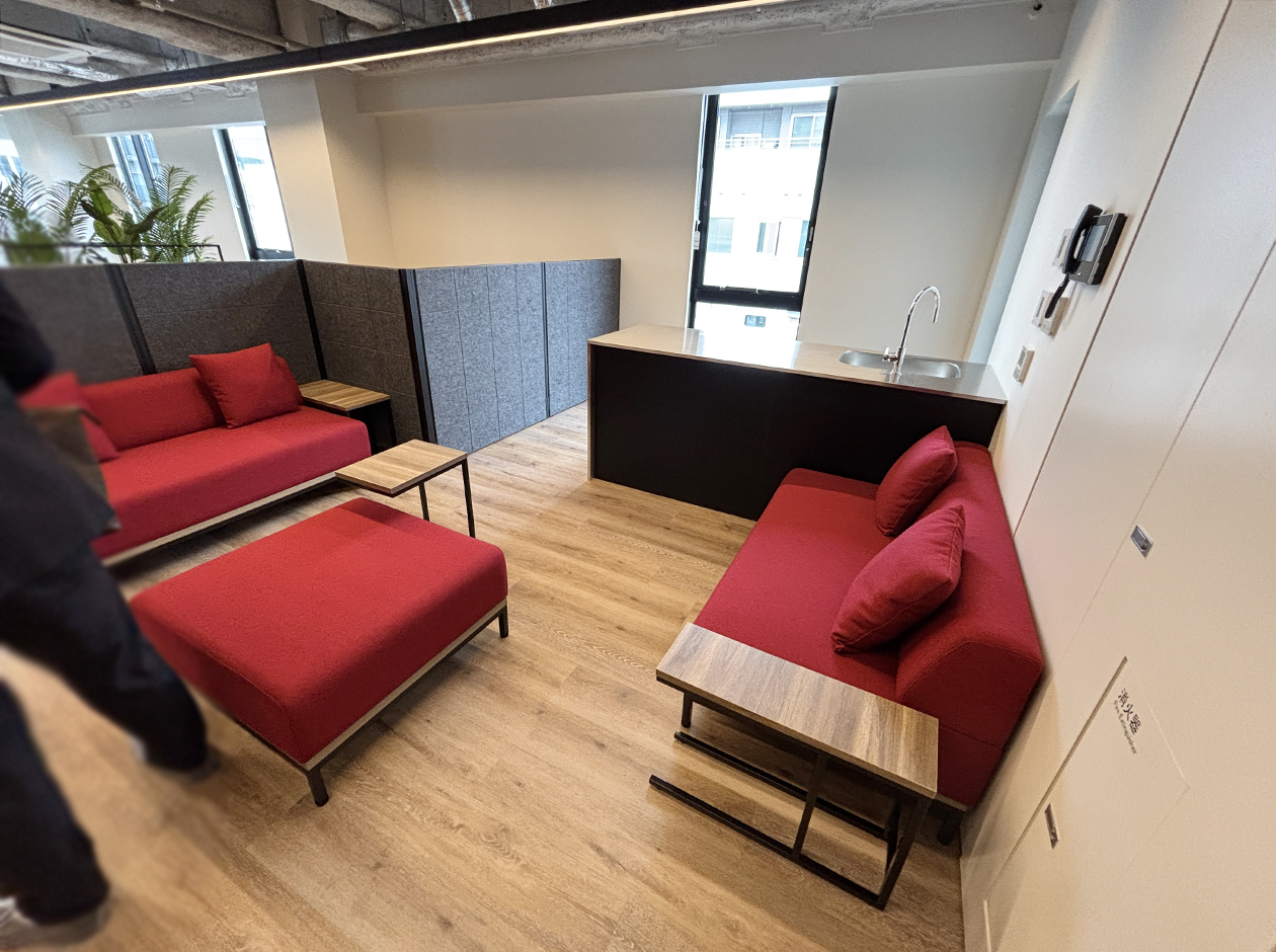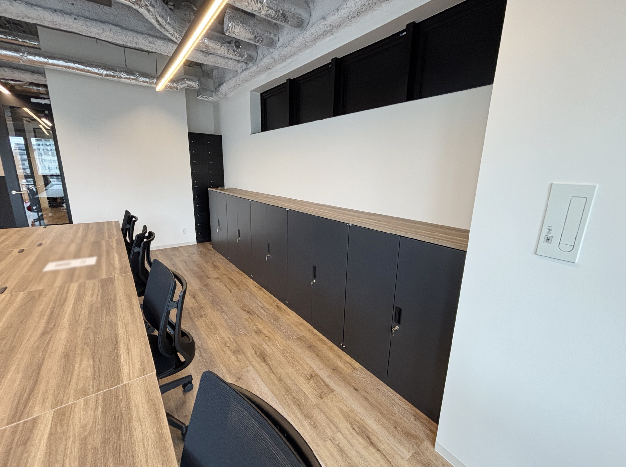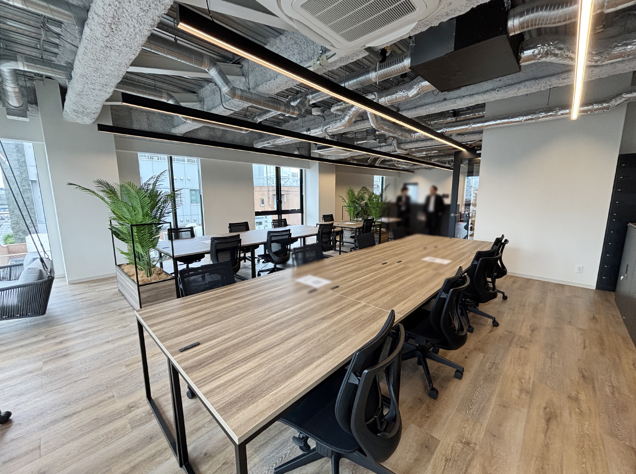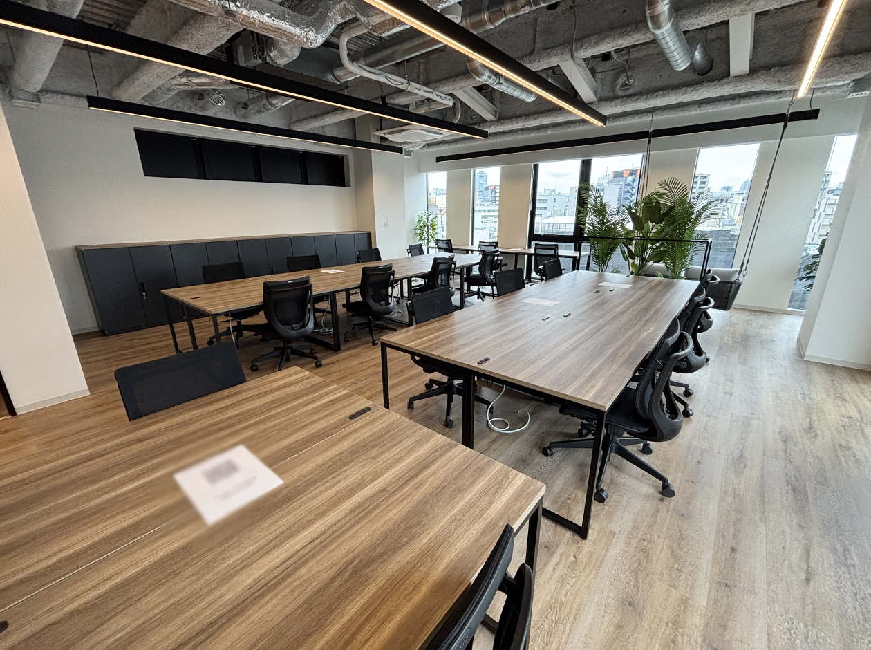 千代田区エリアに位置する、南向きの什器付きセットアップオフィスです。貸室内には、執務席21席・会議室2室(6名用)・テレカンブース2つ・ロッカー・キッチンカウンターをが設置されています。会議室内には、モニターが設置されています。1階とエレベーター不停止機能のダブルセキュリティで安心のオフィスです。トイレは男女別になっています。スケルトン天井で、天井が高く開放的な室内空間です。