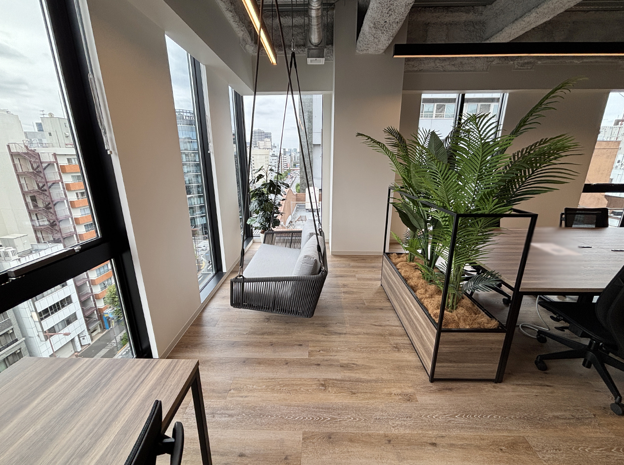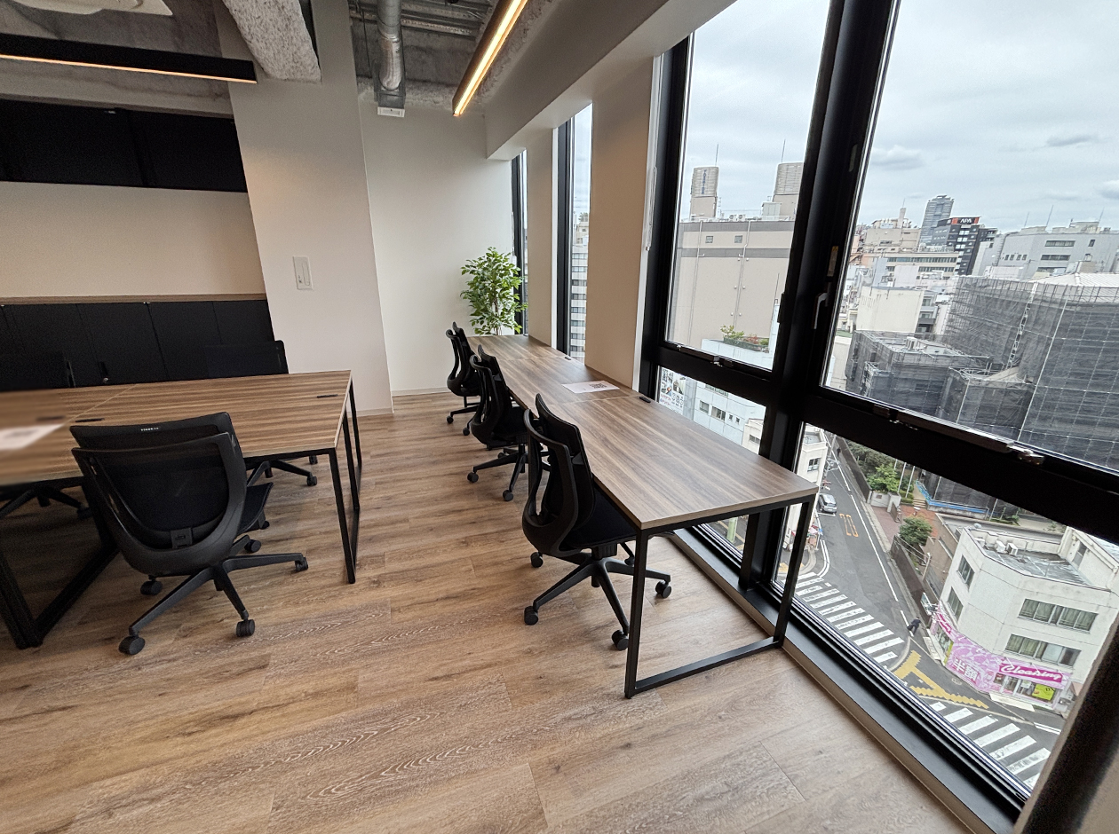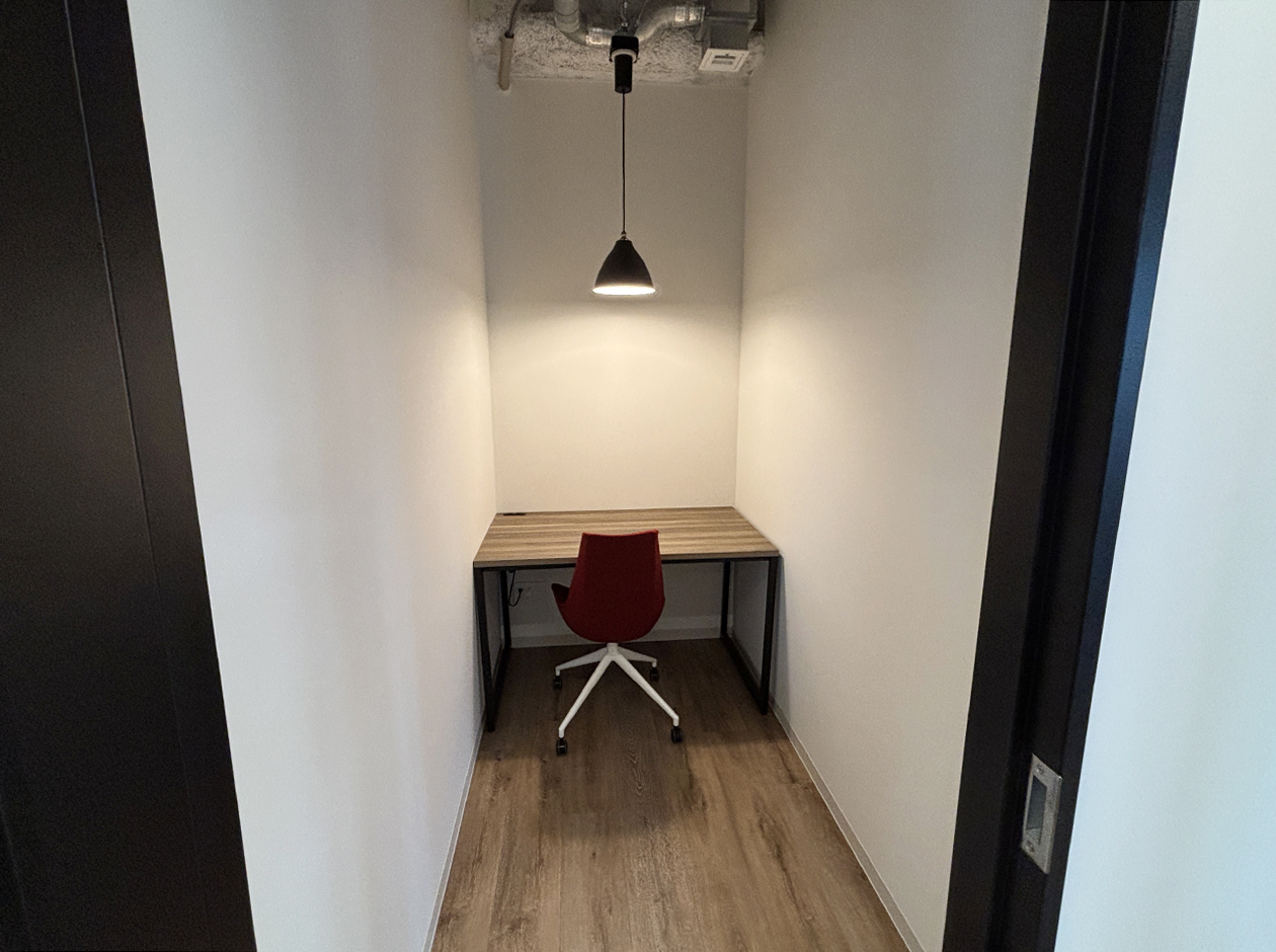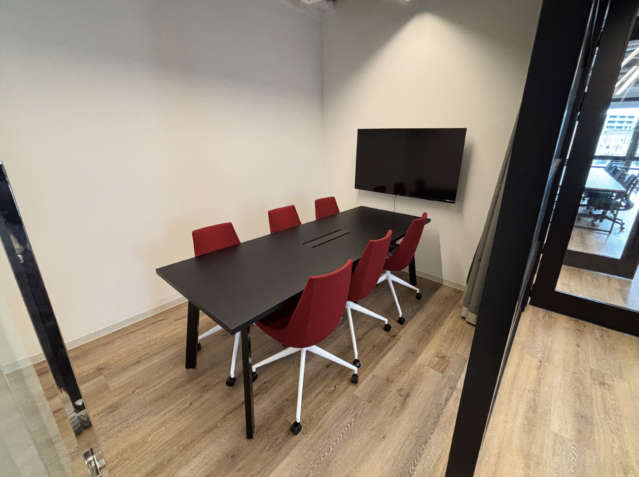 千代田区エリアに位置する、南向きの什器付きセットアップオフィスです。貸室内には、執務席21席・会議室2室(6名用)・テレカンブース2つ・ロッカー・キッチンカウンターをが設置されています。会議室内には、モニターが設置されています。1階とエレベーター不停止機能のダブルセキュリティで安心のオフィスです。トイレは男女別になっています。スケルトン天井で、天井が高く開放的な室内空間です。