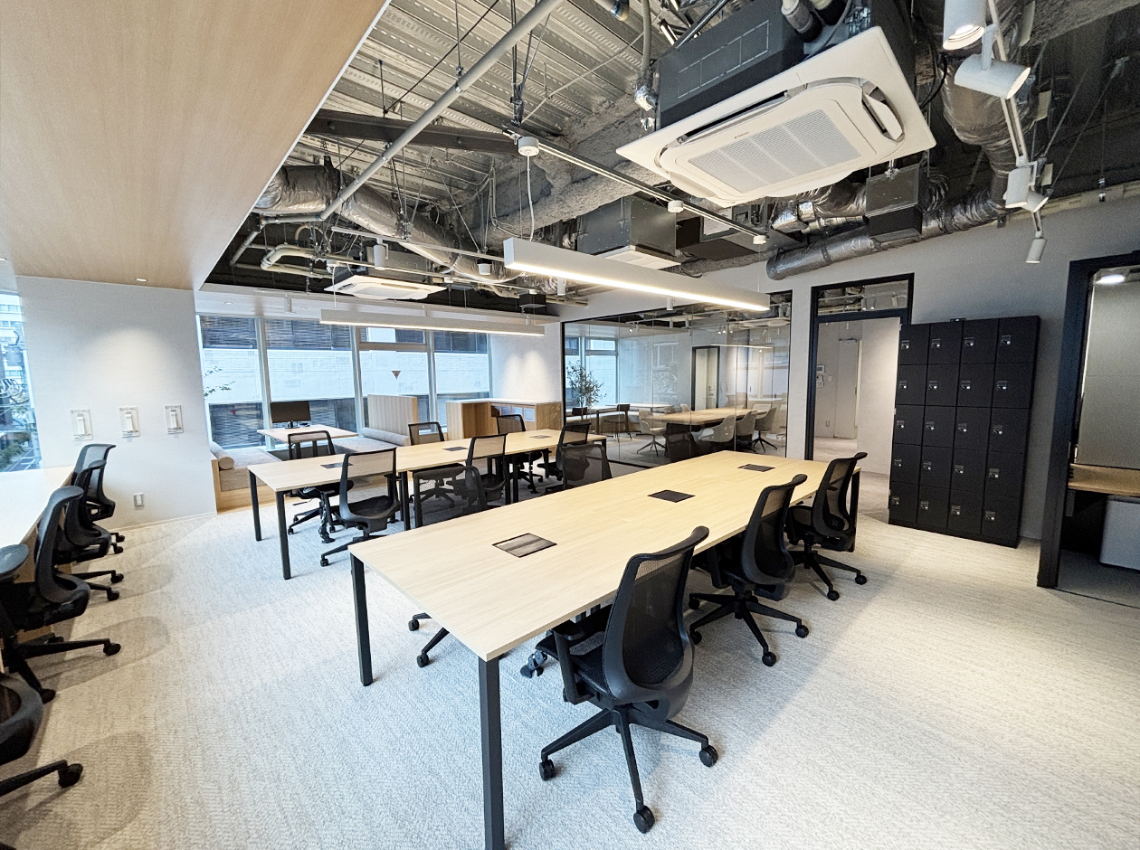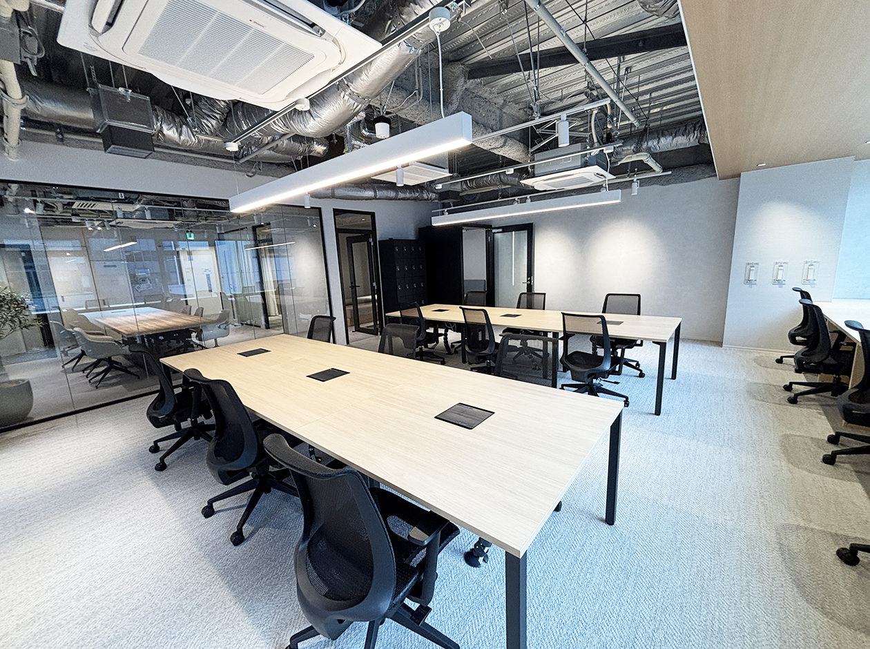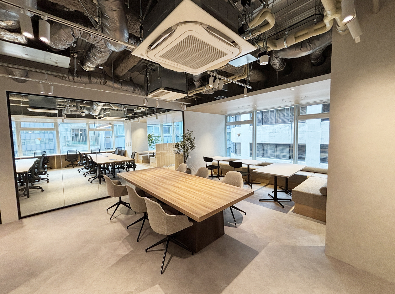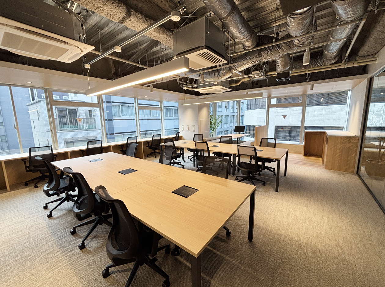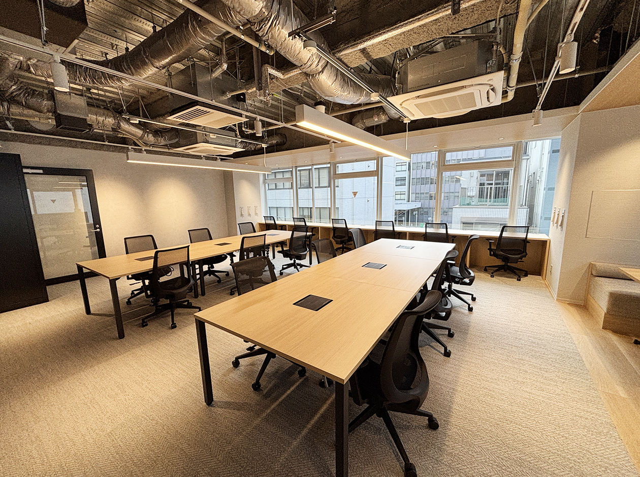 中央区・八丁堀エリアに位置する、内装什器付きのセットアップオフィスです。貸室内には、オープンエリア・6名用会議室・WEBブース・ファミレス席を設置で、充実の設備環境となっています。18名用の什器付きのため、初期費用を大幅に削減できます。男女別トイレを完備しています。