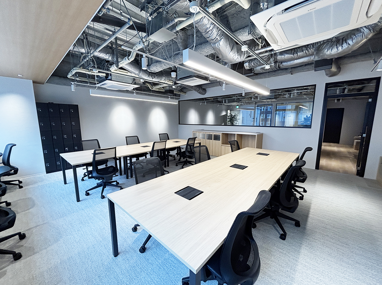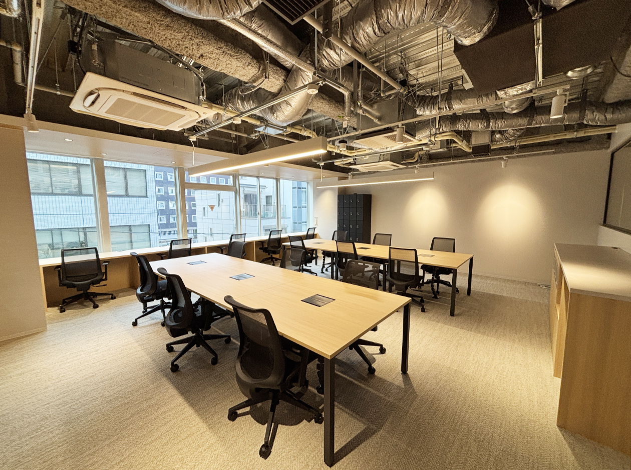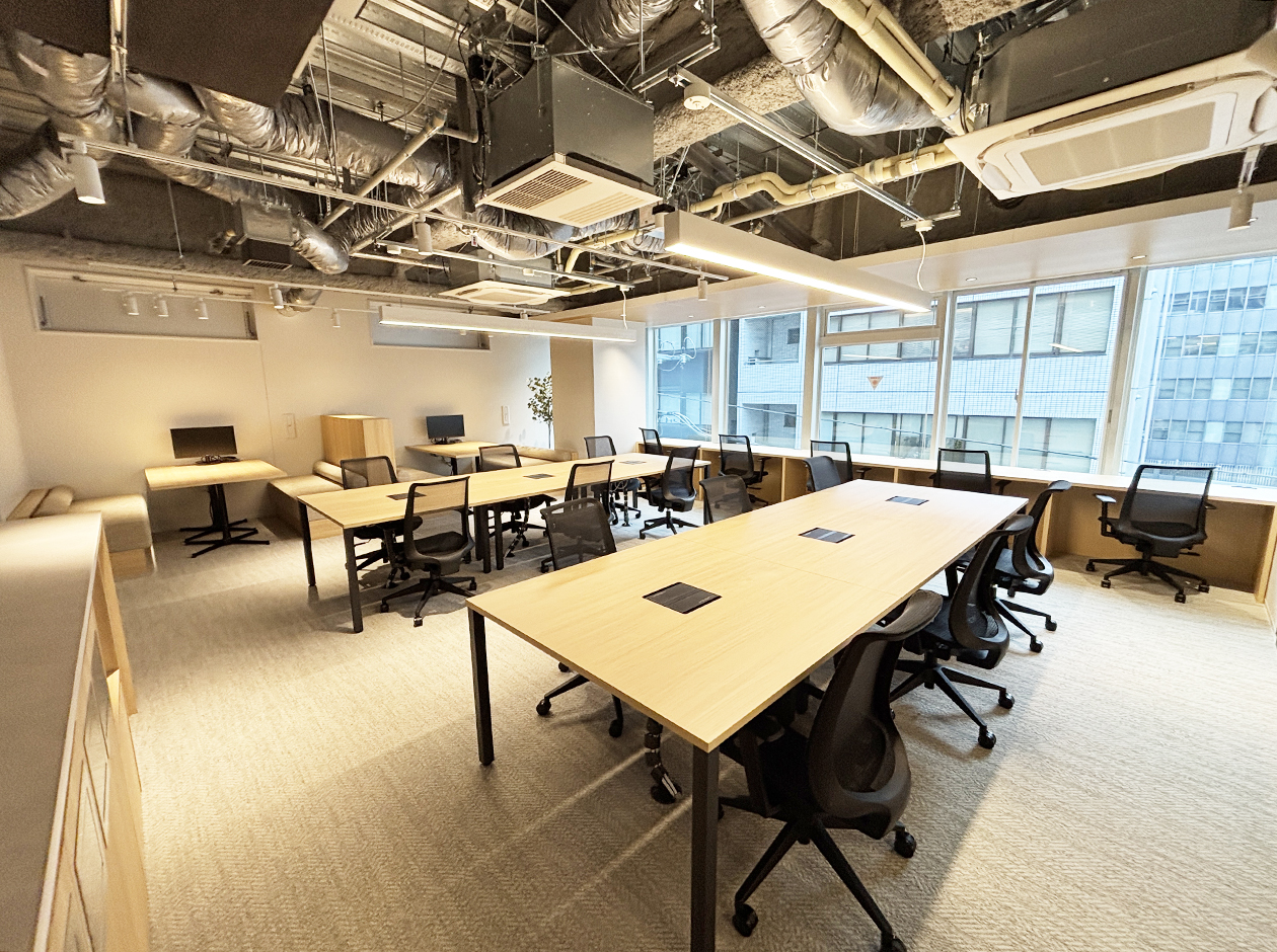 中央区・八丁堀エリアに位置する、内装什器付きのセットアップオフィスです。貸室内には、オープンエリア・6名用会議室・WEBブース・ファミレス席×2を設置予定で、充実の設備環境となっています。17名用の什器付きのため、初期費用を大幅に削減できます。男女別トイレを完備しています。