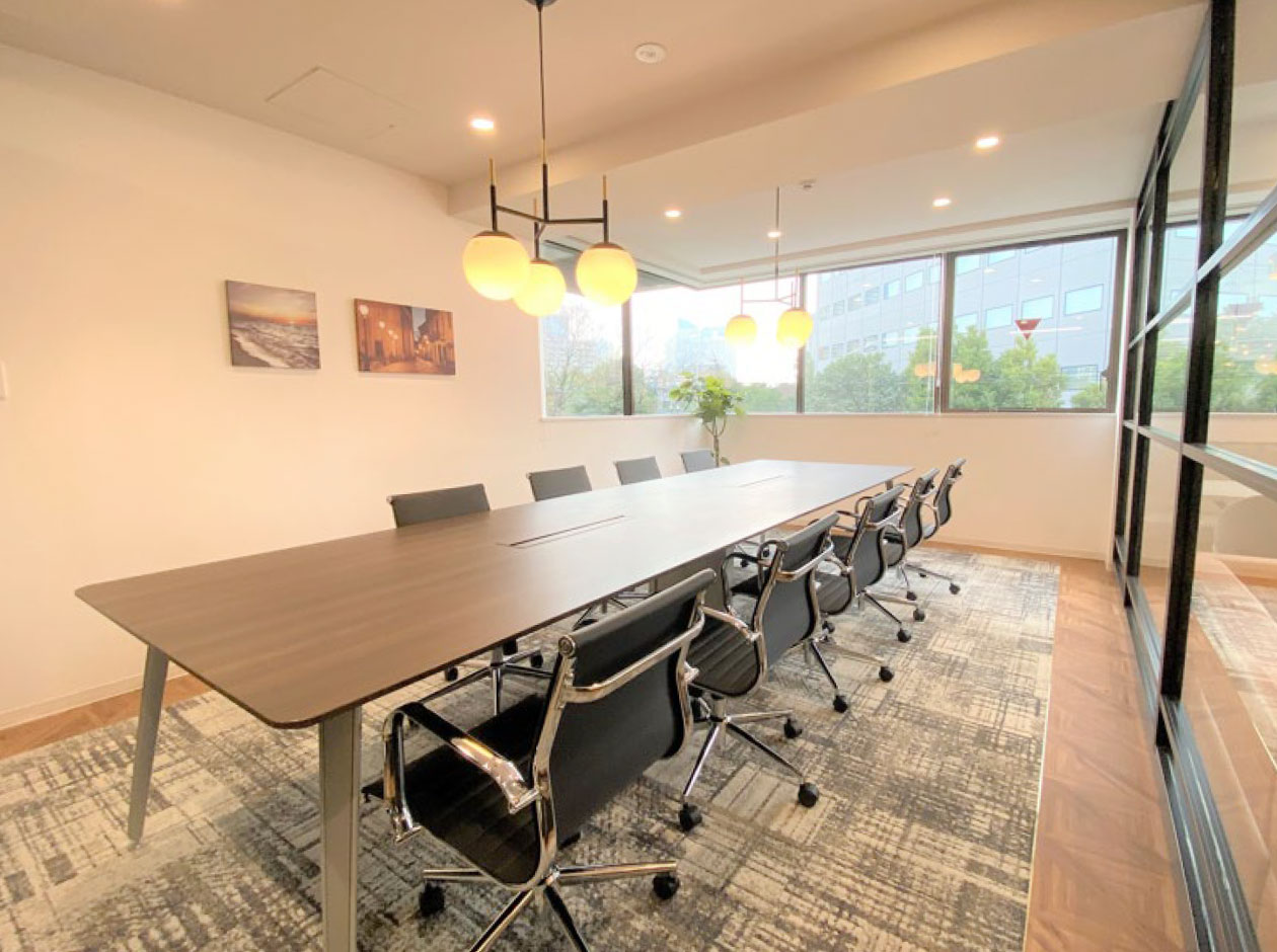 中央区・明石町エリアに位置する、セットアップオフィスです。貸室内には執務室の他に、エントランスと会議室2室(6名用1室・10名用1室)が設置されています。男女別トイレを完備しています。ワンフロア・ワンテナントで使い勝手良好です。天井が高く開放的な室内空間です。