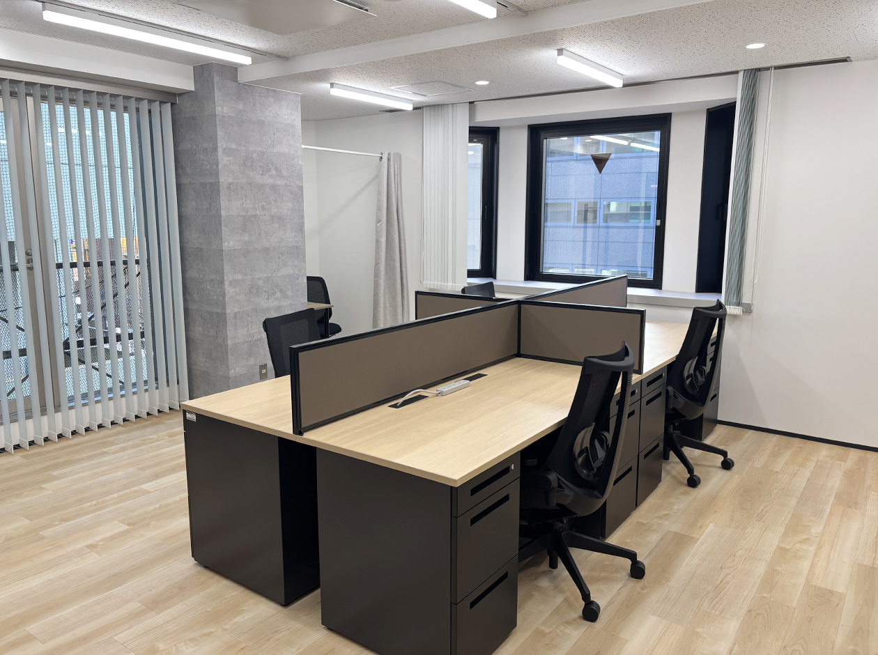 千代田区・九段南エリアに位置する、セットアップオフィスです。最寄駅は、複数路線が利用可能な市ヶ谷駅です。貸室内には、6名用会議室、ファミレス席、受付台、個室席、作業台、ローキャビネット・ハイキャビネットが設置されています。窓からは靖国通りの街路樹が見渡せます。トイレは男女別になっています。
