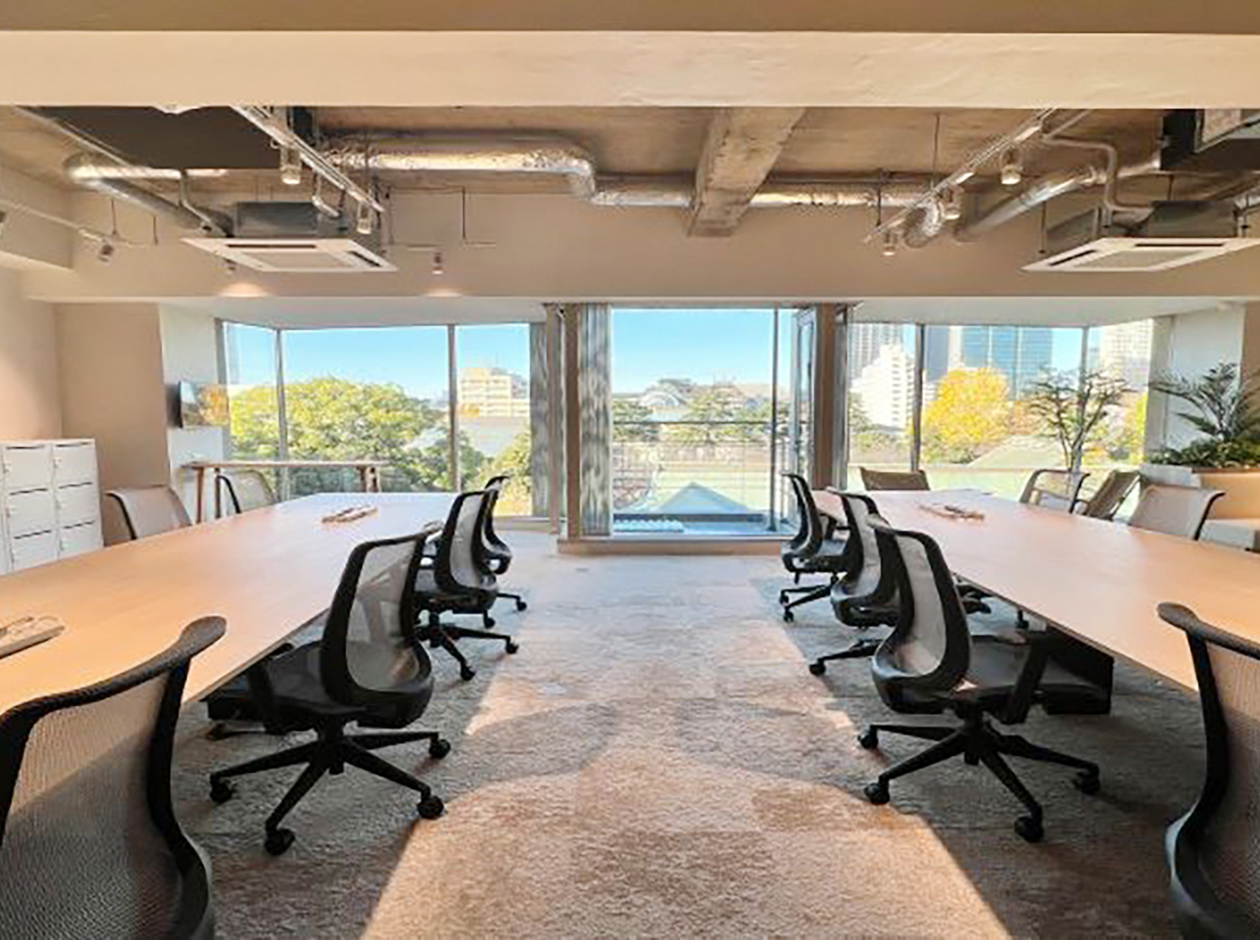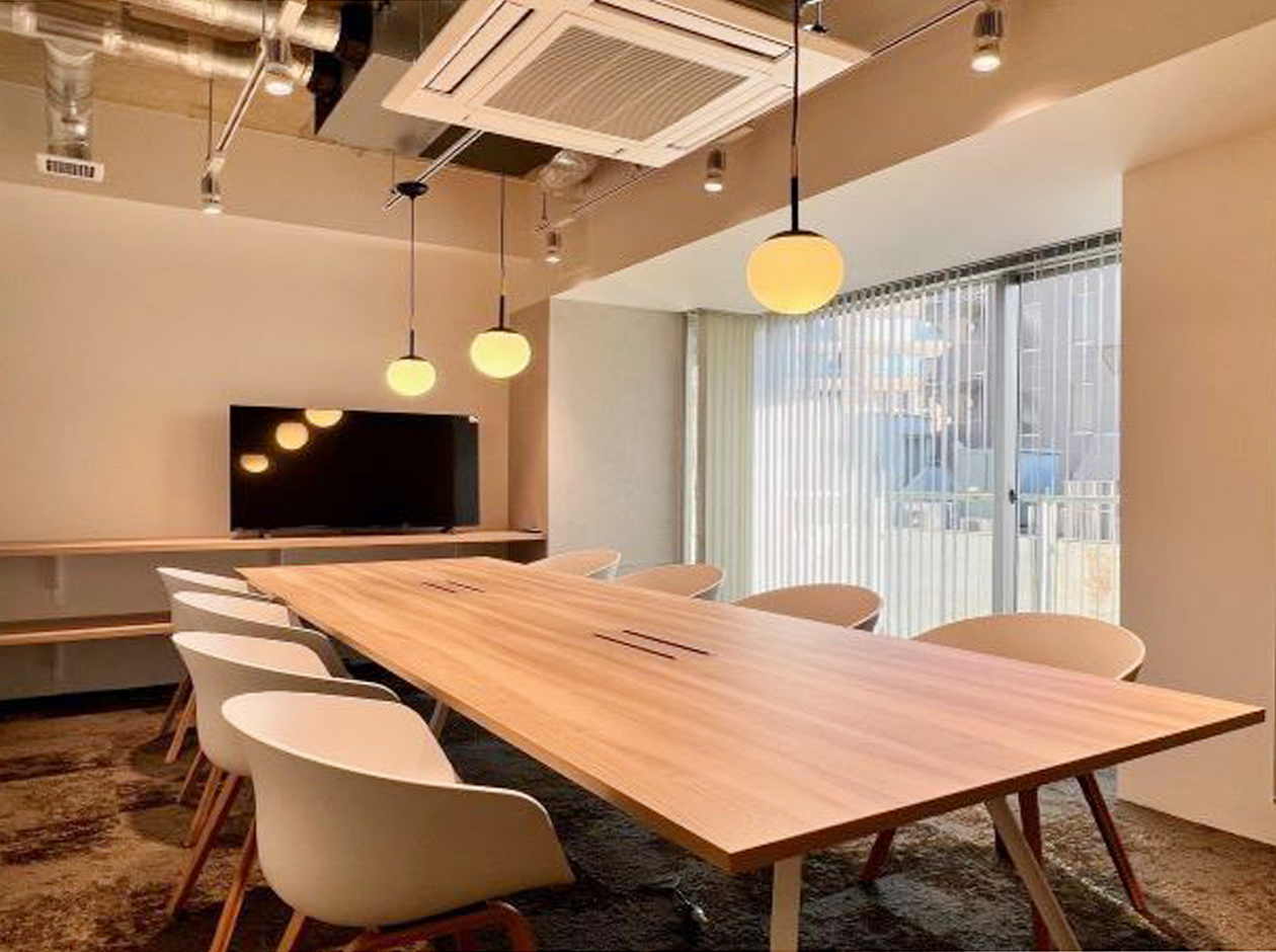 千代田区・九段南エリアに位置する、セットアップオフィスです。貸室内には、8名用会議室・6名用会議室・テレカンブース2室、ミーティングスペース3ヶ所・受付が設置されています。造作及び什器を設置しておりますので、入居後すぐに業務を開始していただけます。クリエイティブな発想が飛び交う開放的なオフィス環境です。