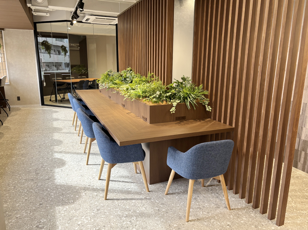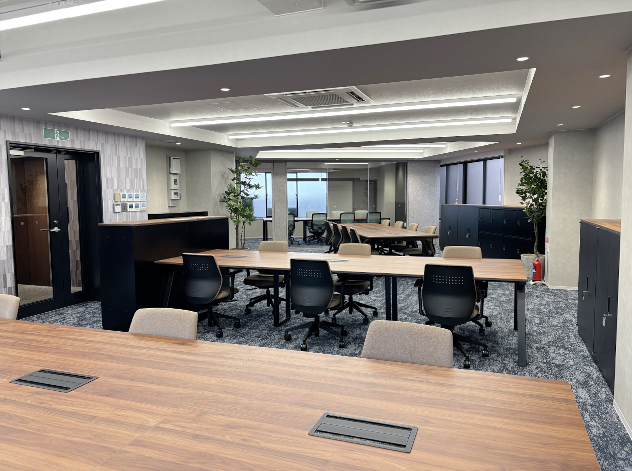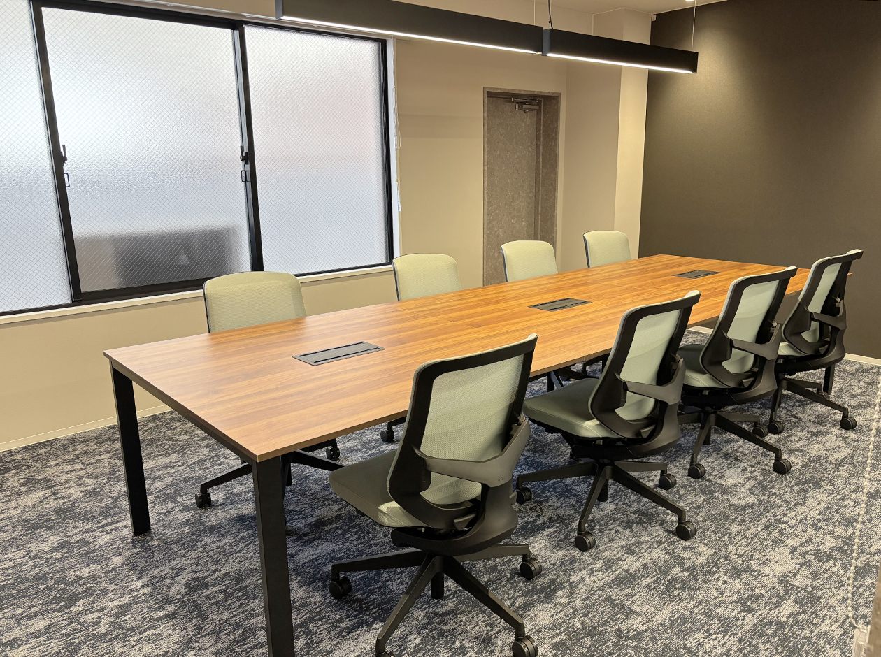 千代田区・飯田橋エリアに位置する、2025年12月工事完成のフルセットアップオフィスです。什器付きのため、初期費用を大幅に削減できます。貸室内には、会議室2室(6名用1室・8名用1室)と22名用のデスク、チェア、キャビネットとラウンジスペース13席を設置しています。ワンフロア・ワンテナントで使い勝手良好です。
