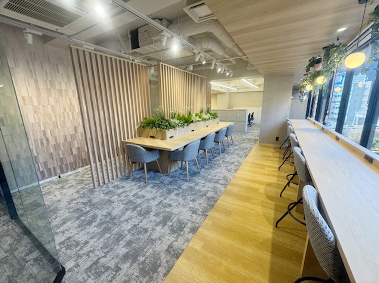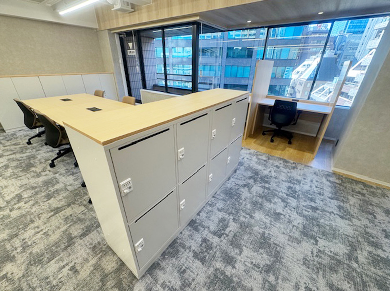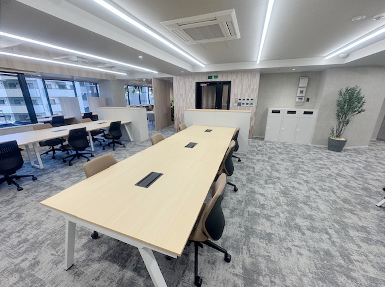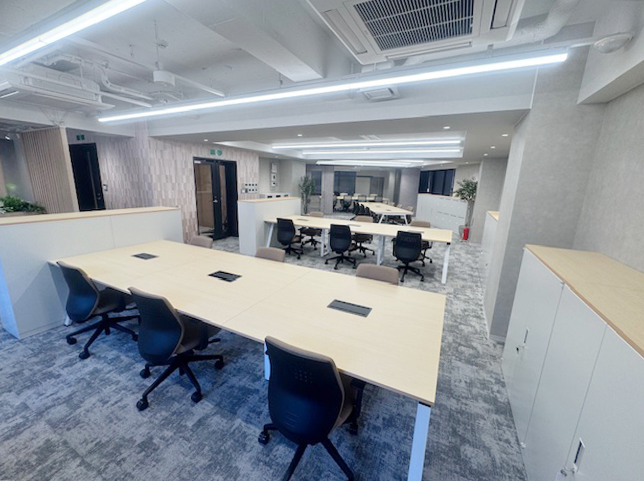 千代田区・飯田橋エリアに位置する、2025年12月工事完成のフルセットアップオフィスです。什器付きのため、初期費用を大幅に削減できます。貸室内には、会議室2室(6名用1室・8名用1室)、22名用のデスクとチェア、キャビネット、ラウンジスペース13席を設置しています。ワンフロア・ワンテナントで使い勝手良好です。